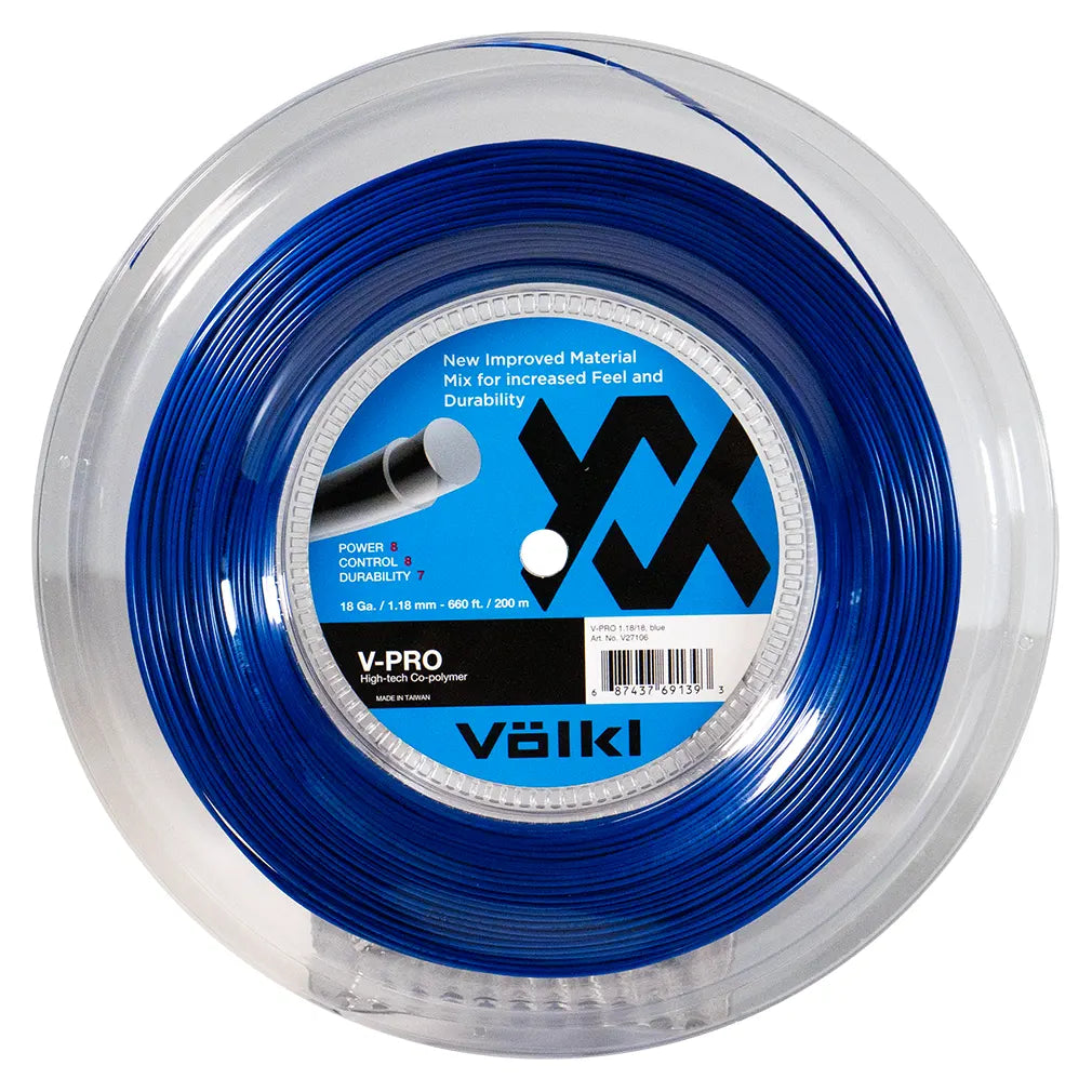Volkl V-Pro Tennis String Reel in Blue is a great value co-polyester offering from the makers of the Cyclone family. The durability is outstanding, and the tension maintenance is solid for a polyester string. Players can take big cuts at the ball and still get good access to spin to control their shots and keep their opponents off balance. Expect a controlled, firm response from V-Pro, a string made for intermediate-to-advanced players.