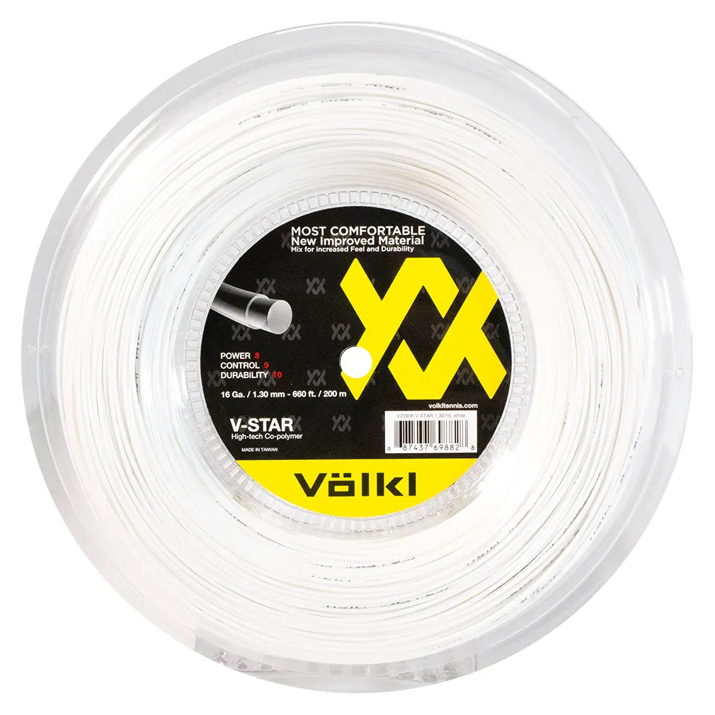Continuing their line of high quality strings, Volkl V Star is the most durable of the line due to its thicker diameter but does not generate quite as much spin while still offering a solid combination of spin, control, and feel. The string is constructed utilizing a co-polymer matrix in order to combine properties for increased tension maintenance and a softer feel compared to a standard polyester. The thicker gauge of V Star offers a solid feel while the greater elasticity provides additional ball-pocketing for enhanced feel. This string is designed for players seeking greater spin and comfort without sacrificing too much durability. All court players looking for additional power from a control and spin oriented polyester based string, should try this offering from Volkl.
