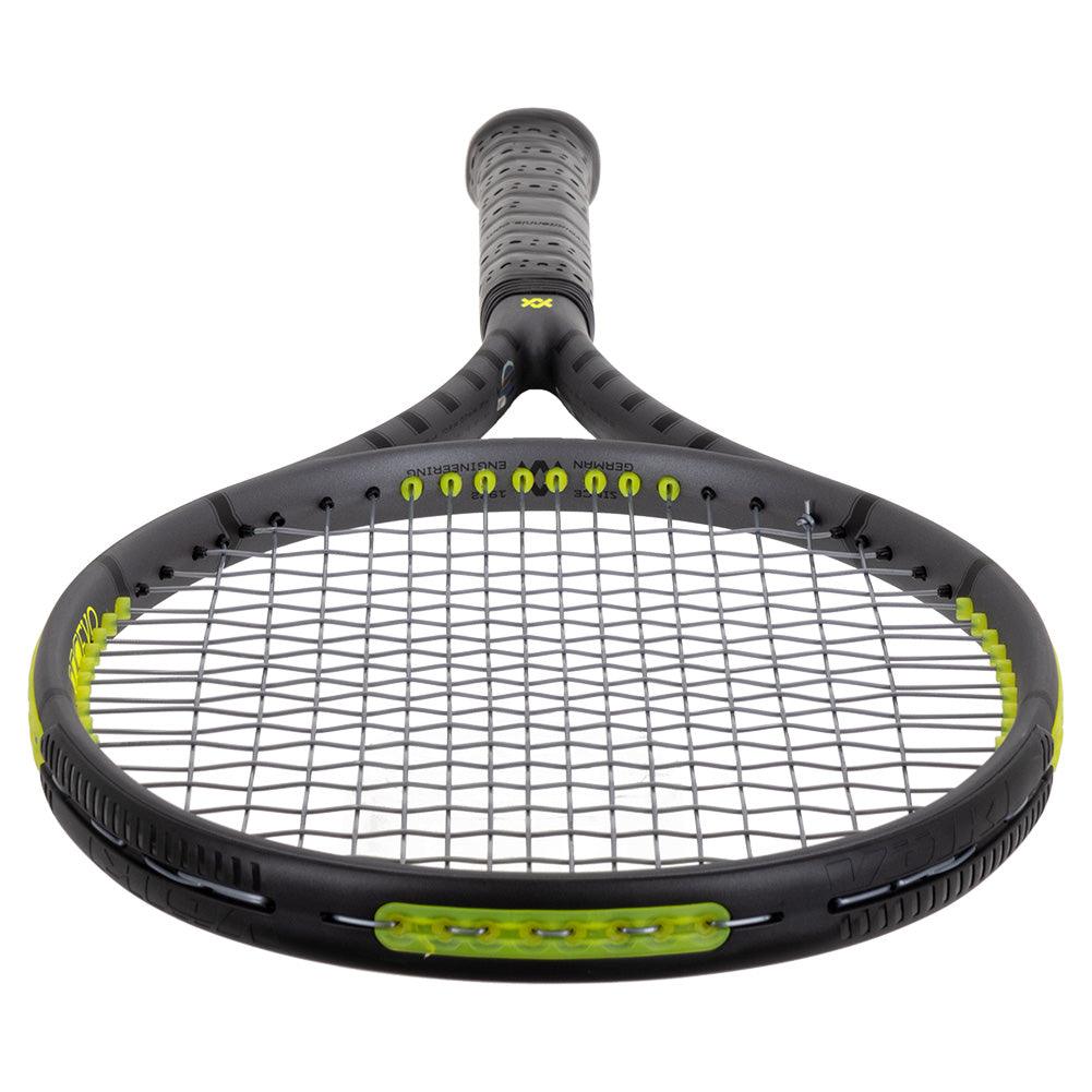 One of Volkl's most popular models, the V1 Classic gets a heavier weight in the Volkl V1 EVO Demo Tennis Racquet. One of the original tweener racquets, it has 102 square inch head, tapered beam, 10.8 ounce unstrung weight and head-light balance. Volkl's Big Grommets increase the size of the sweet spot for added power and control, even on off-center hits. While many tweener frames can be harsh and uncomfortable, Volkl built the V1 EVO with their Dual Dampening Grip. The technology places a rubber-like thermoplastic inside the racquet handle to create a dampened, plush feel, without removing the feel for the ball. While the original V1 Classic was only 10.1 ounces unstrung, the EVO is a good bit heavier at 10.8 ounces unstrung. The result is a more stable impact feel, which holds up better against bigger hitters. Intermediate and advanced players who want a more forgiving sweet spot, but with the stability to handle pace will love the V1 EVO.