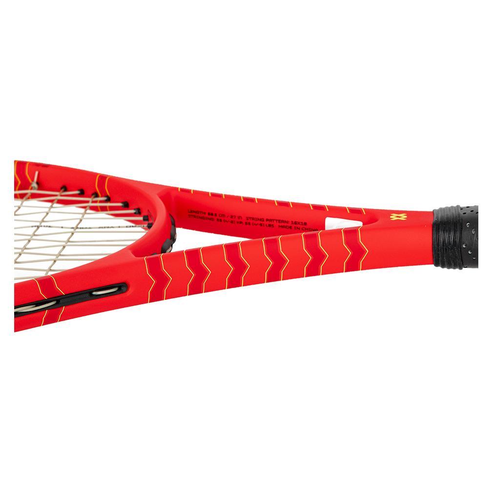 The Volkl Vostra V8 315g Demo Tennis Racquet offers explosive spin and impressive stability for advanced play. RED CELL technology takes the strong and durable VCELL material and embeds REVA (revolutionary EVA) in key portions of the frame. The result is a softer racquet with a better feel and more power. The V-TEX butt cap, Super Grommets, and V-Sensor Handle create an arm-friendly hitting experience. The V8 315g is 11.1 ounces unstrung, and it has a tapered beam design to enhance the power and stability of the racquet. This model is the perfect choice for big hitters who attack with spin and who need stability against stiff competition.
