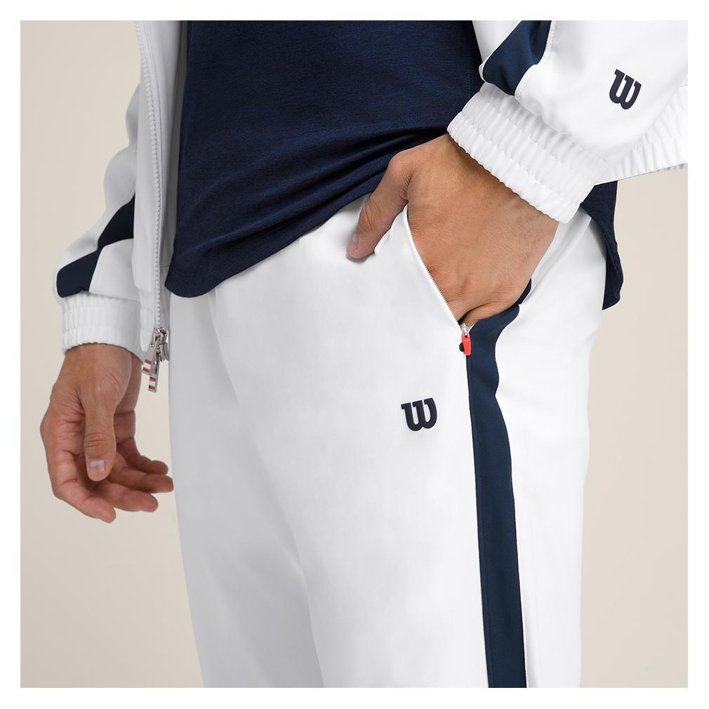 Get in the groove with the Wilson Men's Grand Slam Tennis Jogger. They're the perfect pair of pants for warming up in preparation for a big match. Alongside stretchy materials are an inner gusset for improved mobility and articulated knee joints for a greater range of motion. The on-seam pockets allow for secure storage and ankle zippers make it easy to get in and out of your shoes. Quick-drying fabrics seal the deal by taking away moisture from the skin for temperature regulation.