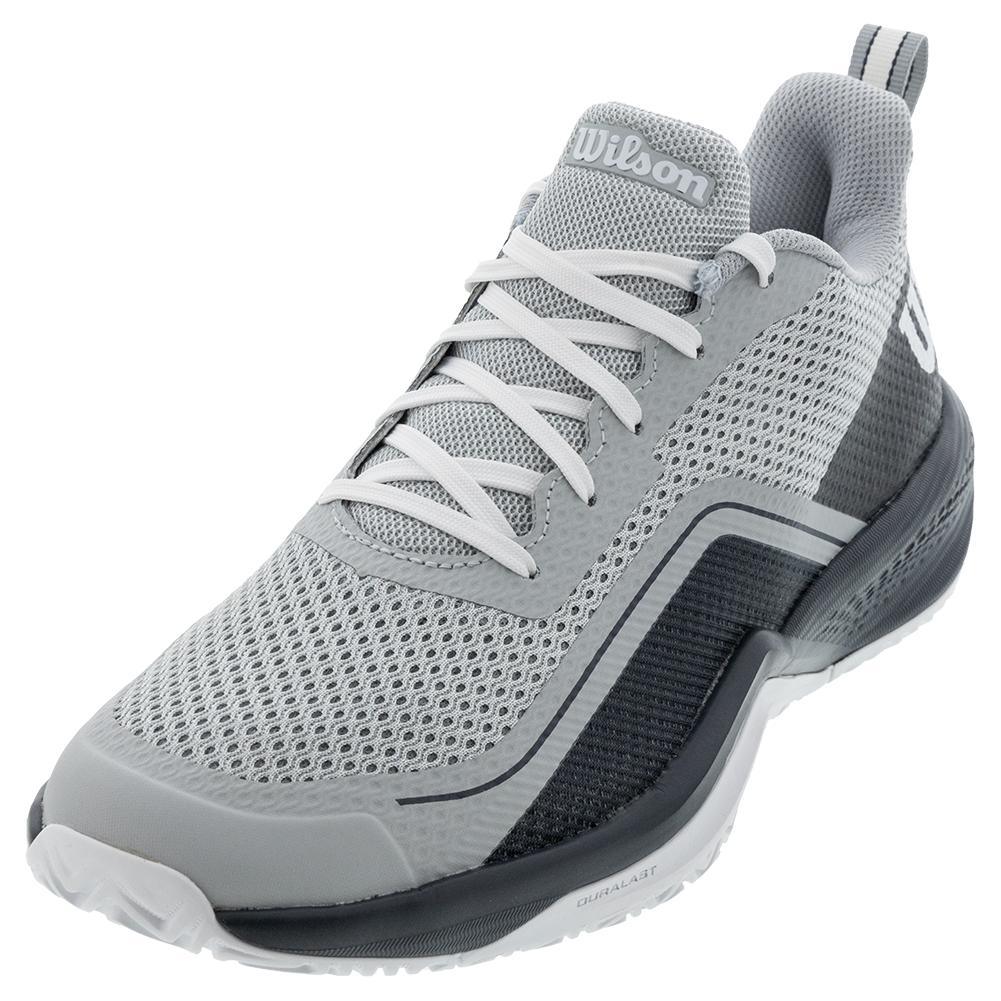 The Wilson Men's Rush Pro Lite Tennis Shoes provide familiar Rush Pro cushioning in a lighter and speedier design. The wide-toe box fit helps you maintain stability in motion, and the breathable mesh keeps your feet cool. A special curved sole design supports a smooth transition from heel strike to toe-off. The arch is reinforced with Pro Torque Chassis Lite which blends the line between stability and flexibility.