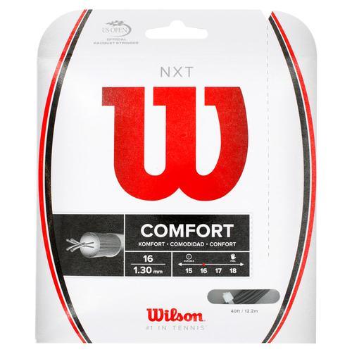 The Wilson NXT Tennis String is the world's most popular multifilament string featuring a thinner gauge for more power and spin, at the expense of some durability. This string has numerous followers thanks to its combination of comfort and playability. The addition of the patented Dupont Xycro Micro-Fibers helps to increase the sweetspot size and reduce vibration for greater arm comfort. Rated the #1 synthetic in playability by the USRSA in 1999, this string has remained popular and continues to gain new followers. The multifilament construction is coated with a polyurethane resin coating to seal the delicate fibers to enhance durability. The resin material also helps to soften the feel of the string, providing comfort and power. This is a great string to try for anyone with tennis elbow, as well as anyone seeking natural gut like performance from a synthetic construction. Wilson NXT increases the size of the sweet spot on your racket by 10% and reduces shock by 74% over a traditional synthetic gut string.
