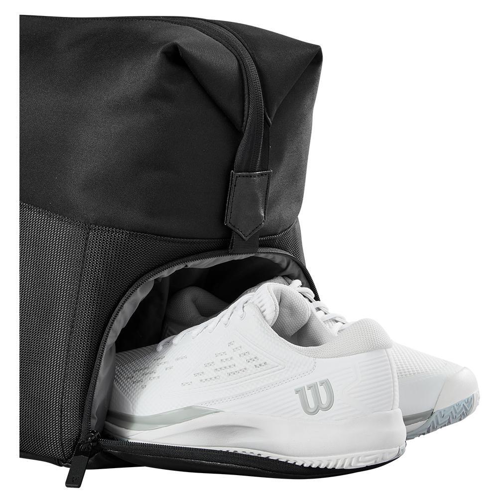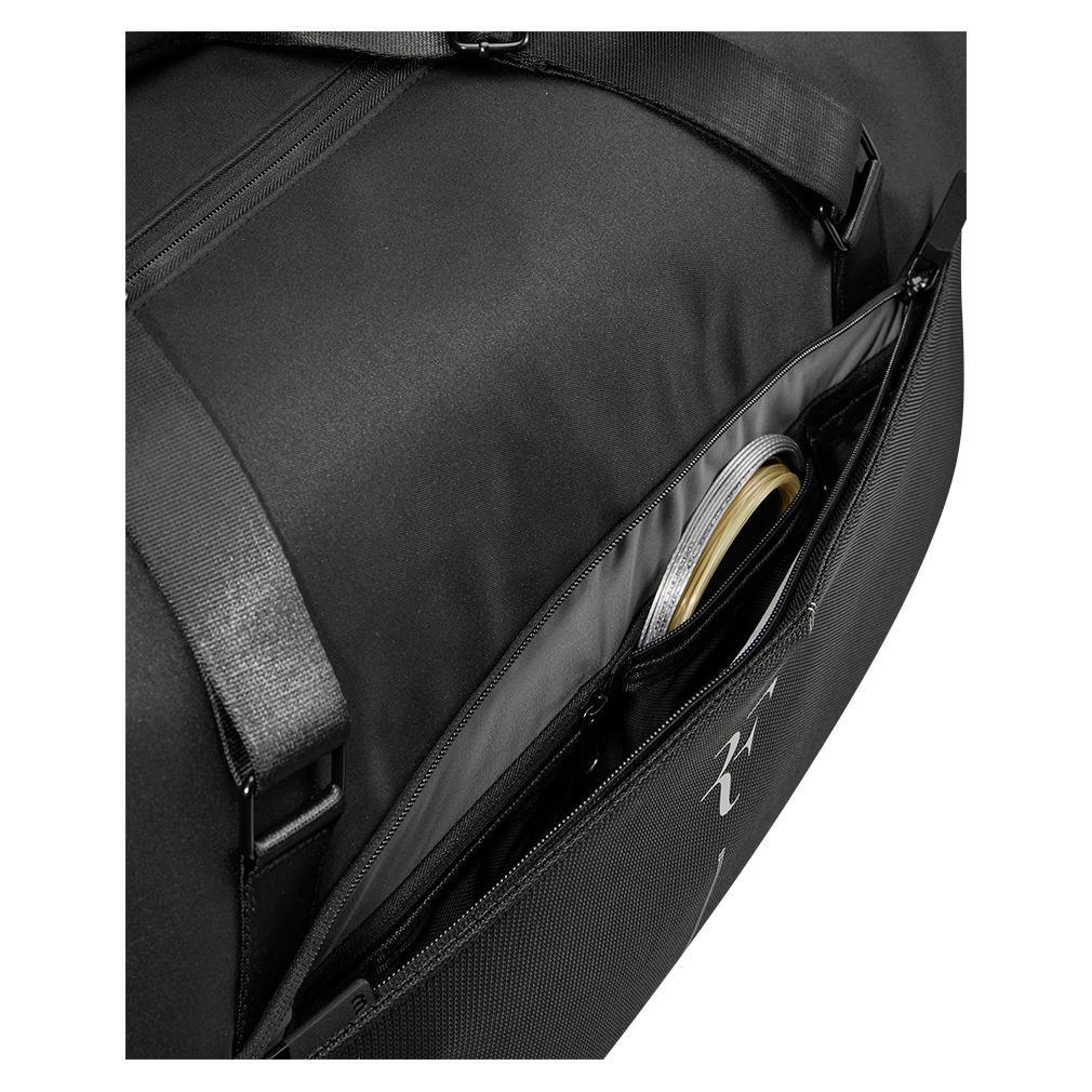 The Wilson RF Practice Duffel Bag Black is inspired, designed, and tested by Roger Federer. The main compartment can hold 6 racquets and additional tennis gear. Two large side accessory pockets can store smaller items, and the shoe compartment keeps your racquets and gear separate from your shoes. The bag's interior features a premium material to protect your gear. This bag is the perfect option for the practice courts, or for someone who wants a cross between a tennis and fitness bag.