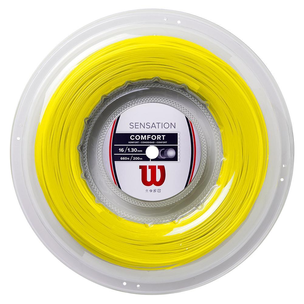 One of the first multifilament strings to be produced, the Wilson Sensation 16g adds some bright color to a tried and true formula. This string features a multifilament core utilizing Dupont Zycro Micro-Fibers surrounded by a series of outer wraps. The Zycro fibers help to increase the sweet spot size and reduce vibration for greater comfort. Sensation will play slightly stiffer than Wilson NXT, due to the outer wraps, which help to increase the durability of the string by protecting the microfiber core. This is a solid string choice for players seeking comfort and overall playability at a great price.