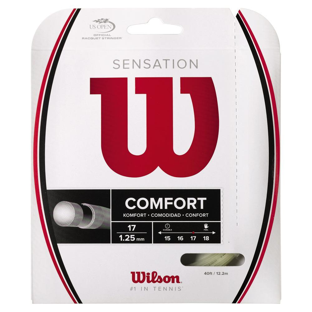 One of the first multifilament strings to be produced, the Wilson Sensation remains popular among players of all levels thanks to its combination of feel and playability. This one features a multifilament core utilizing Dupont Zycro Micro-Fibers surrounded by a series of outerwraps. The Zycro fibers help to increase the sweetspot size and reduce vibration for greater comfort. Sensation will play slightly stiffer than Wilson NXT, due to the outerwraps, which helps to increase the durability of the string by protecting the microfiber core. This is a solid string choice for players seeking comfort and overall playability at a great price.