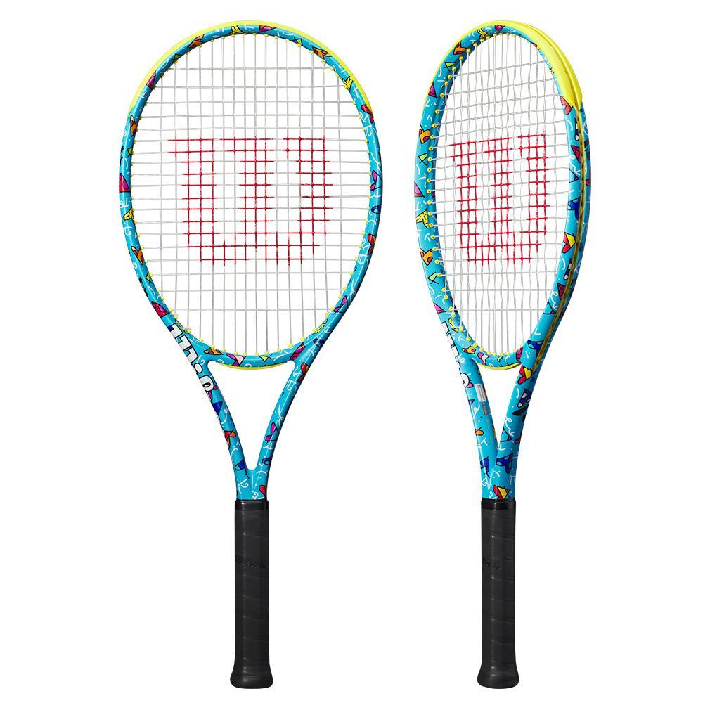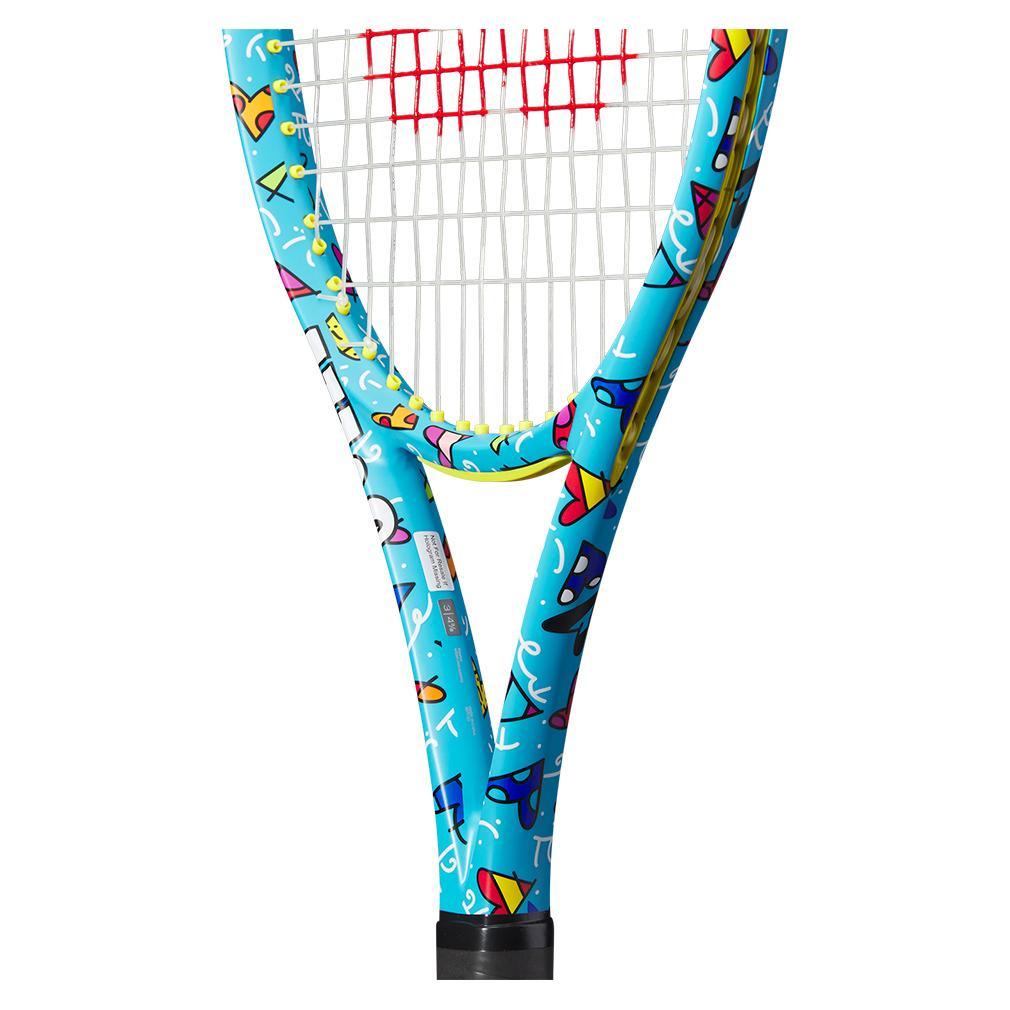 The Wilson Ultra 100 v4 Britto Hearts Tennis Racquet is the result of a collaboration with artist Romero Britto. The racquet is built with a new frame geometry and thinner beam construction. FORTYFIVE° has been integrated into the lay-up for a softer, more comfortable feel along with enhanced stability. An expanded Sweet Spot Channel at the tip of the hoop adds extra power with less bulk for a sleeker, more aerodynamic look. V4.0 features the Crush Zone grommet system which compresses at impact to boost power and dwell time on strings.