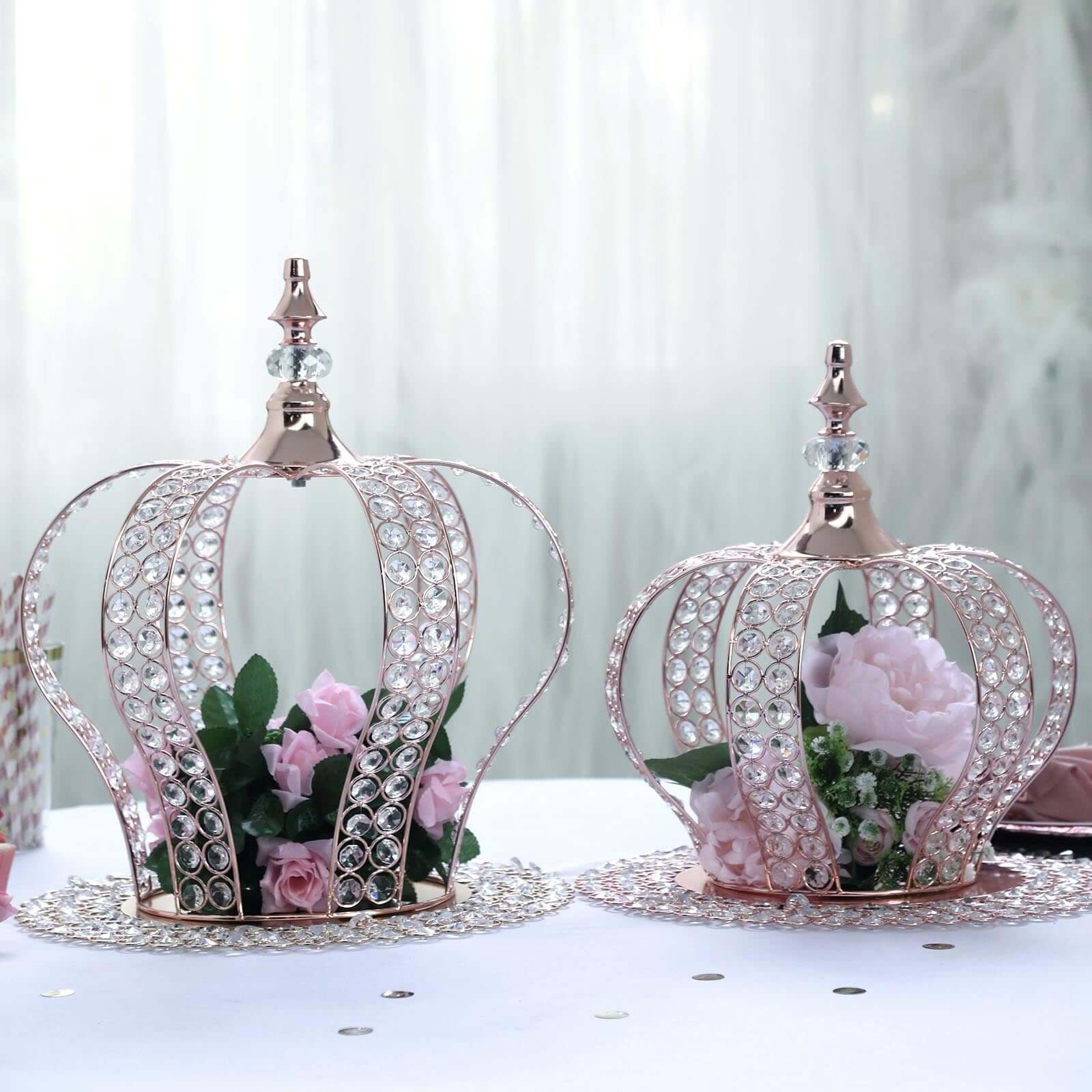 Wired Metal Round Charger Plate 14" in Rose Gold with Acrylic Crystal Beads, Glamorous Decorative Dinner Charger Tableware