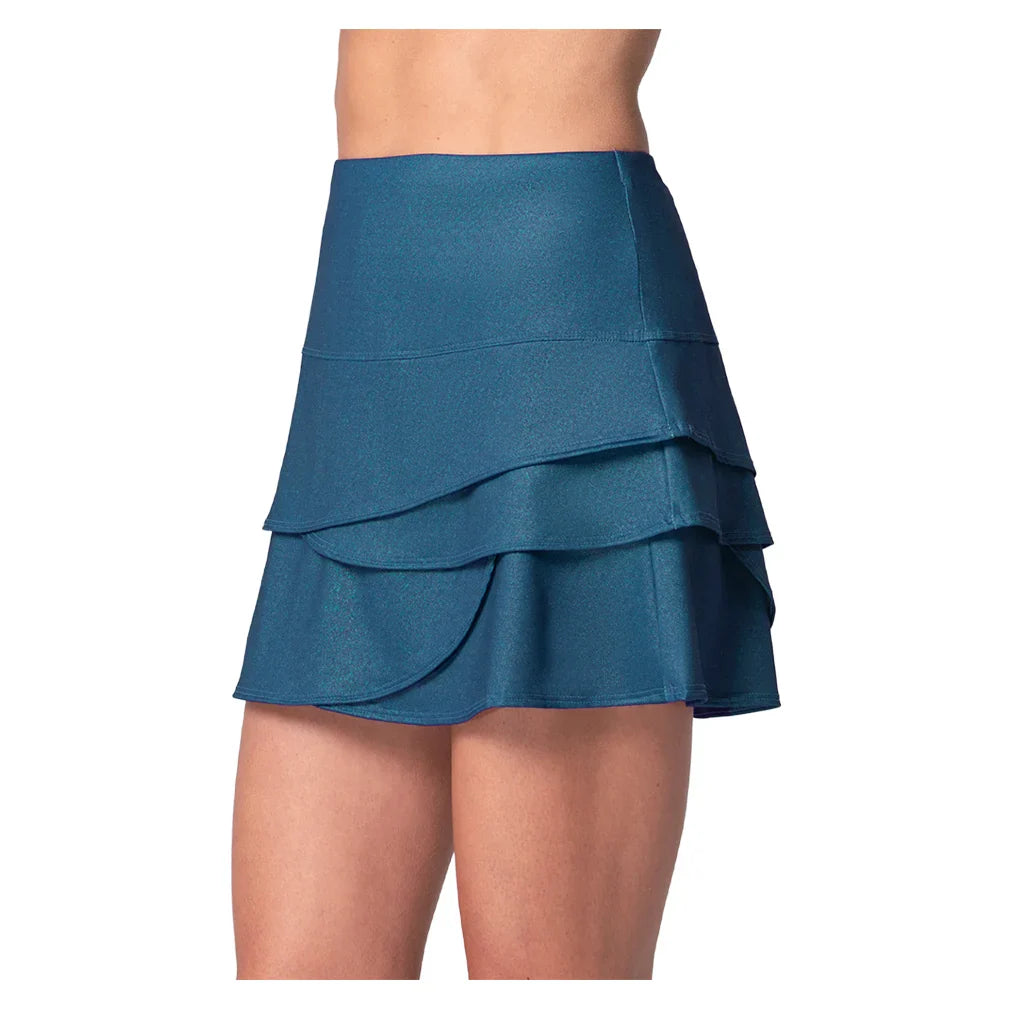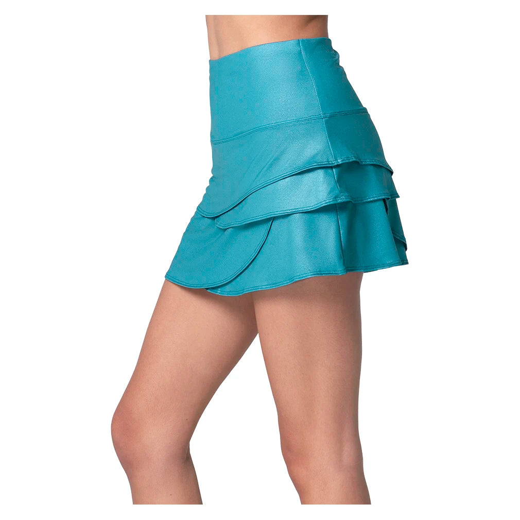 Shine bright on the court with the Lucky In Love Women's Long All That Shimmers Scallop Skirt. Designed with layered metallic scalloped tiers and a built-in shortie, this skirt brings fashion-forward flair and high-performance function together in one stylish piece. The elastic waistband delivers a comfortable fit, while the moisture-wicking, four-way stretch fabric keeps you dry and mobile during every match.