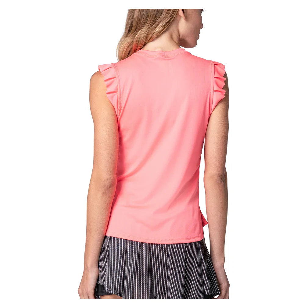 Bring glam to the court in the Lucky in Love Women's Bring It On Rib Tennis Tank! This tennis tank offers a high, rounded neck and full back coverage. It has ruffles at the top of the sleeveless armhole cutouts, which adds tons of style. This tennis tank is made from an ultra-soft material and pairs beautifully with other apparel by Lucky in Love. Buy this tank today!
