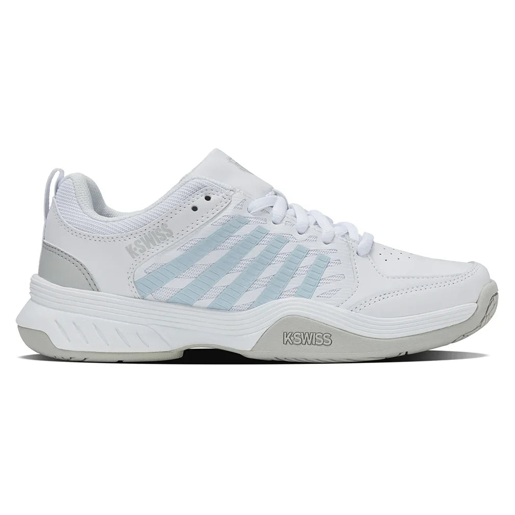 The new K-Swiss Women's Court Express 2 Tennis Shoes is the perfect option for developing players. Its breathable mesh quarter is paired with a K-EVA Midsole for maximum comfort and support. A non-marking Aosta 7.0 rubber outsole with a herringbone pattern offers optimal traction and extends as a drag guard for increased durability. This shoe merges a light-responsive structure with enhanced comfort components, giving you the edge you need to level up your game.