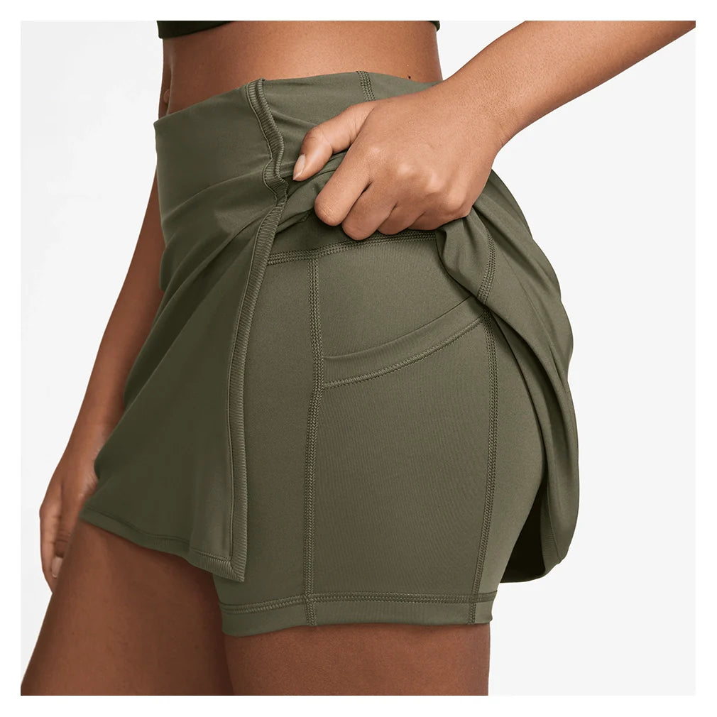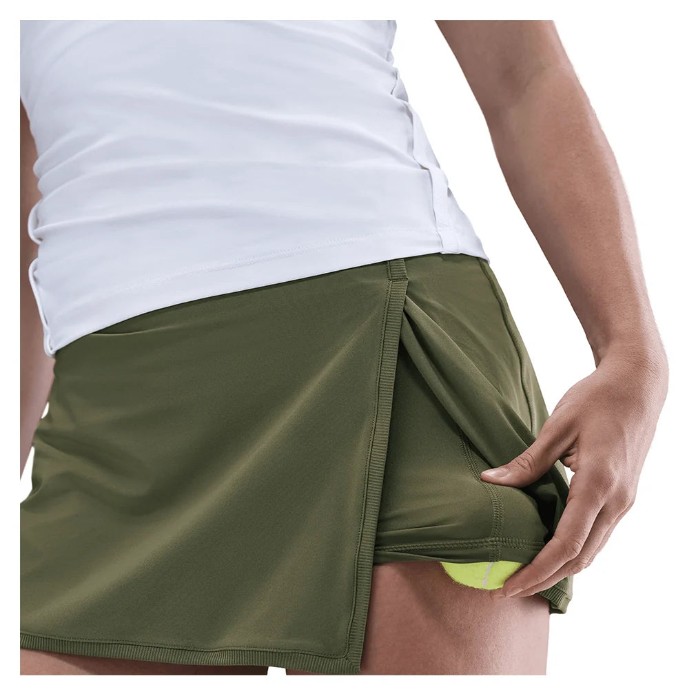 Stand proud at the podium with the Nike Women's Dri-Fit Victory Straight Tennis Skort. Its wrap-around style provides a sophisticated style for players who like to keep their outfits simple and straight to the point. Dri-FIT technology moves sweat from the skin for quicker evaporation, helping athletes stay dry and comfortable. Included are inner shorts that have drop-in pockets for tennis balls and other accessories you might bring to the tennis court.
