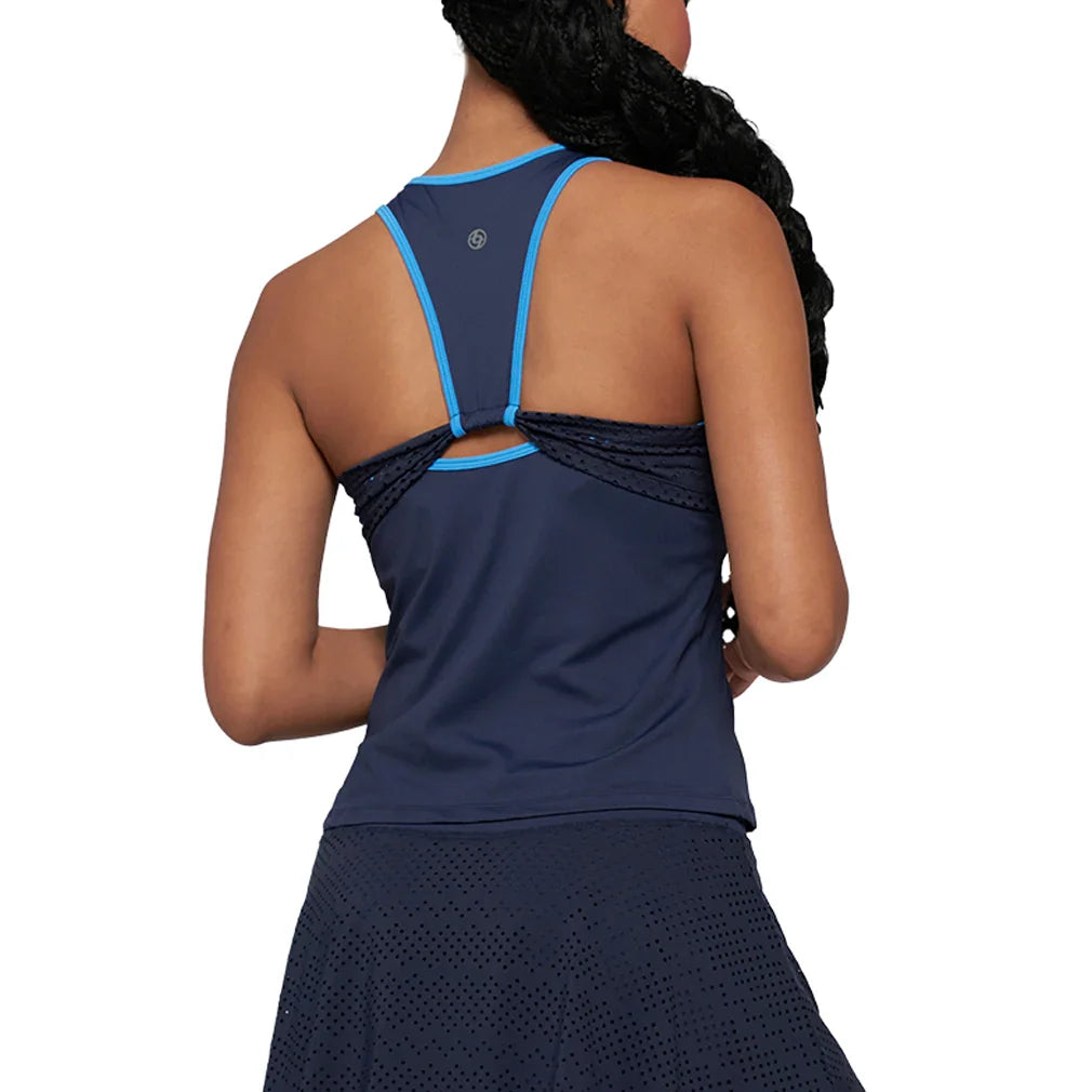 Women's Elite Laser Cut Star Tennis Tank Jet Blue and Lagoon