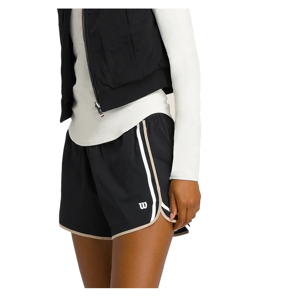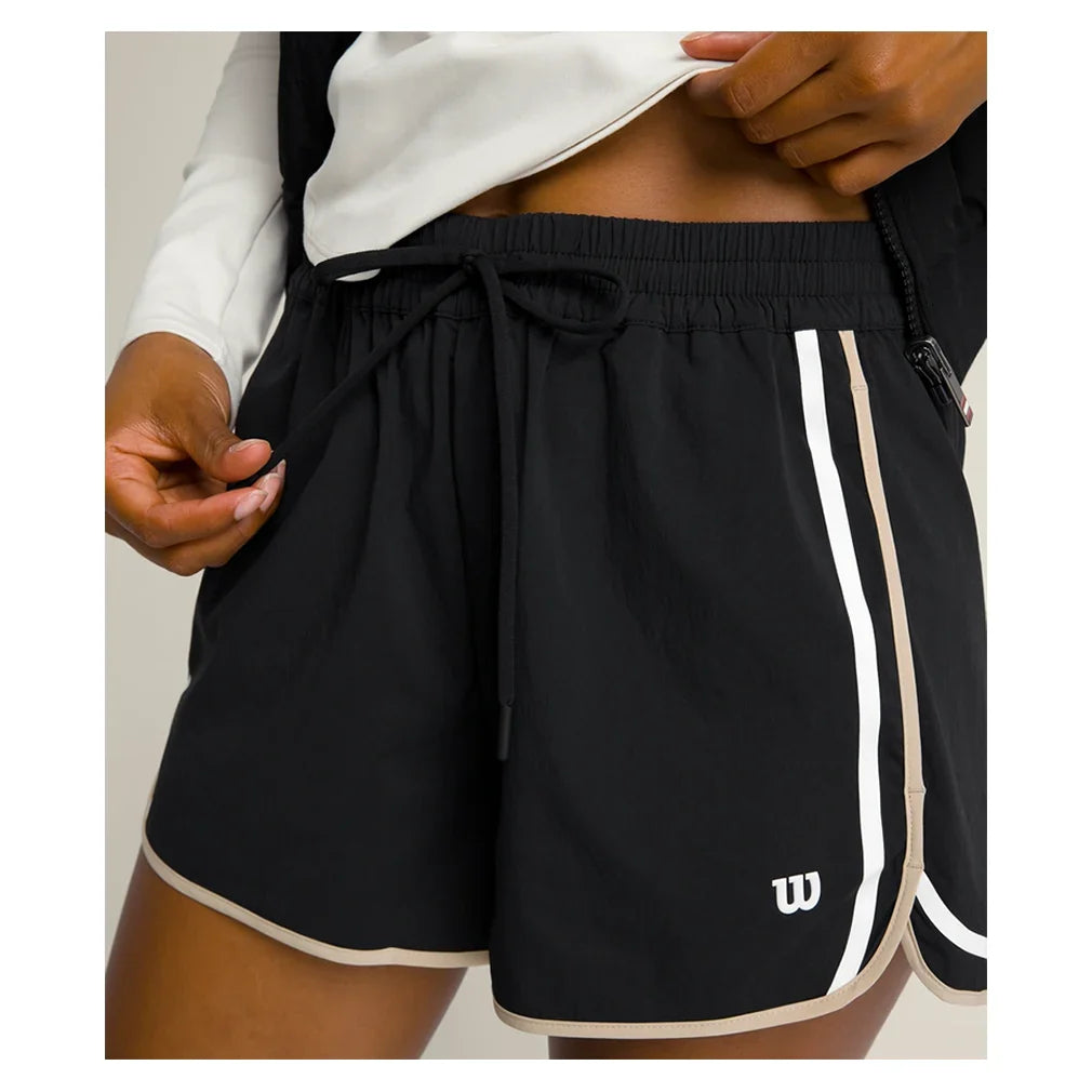 Lightweight comfort meets everyday versatility. The Wilson Women's Ellyn Tennis Short Black is designed for both performance and casual wear, featuring an encased elastic waistband with a lightweight, technical drawcord for a personalized fit. Crafted from a breathable, quick-drying, and stretch-woven fabric with a soft cotton feel, these shorts deliver all-day comfort while keeping you fresh with anti-odor technology. The 2.5-inch inseam provides a flattering, easy fit, and ample storage—including two hand pockets, a back welt pocket, and an interior key pocket—ensures you can carry essentials effortlessly. Whether you're on the court or on the go, these unlined shorts are a must-have for any active wardrobe.