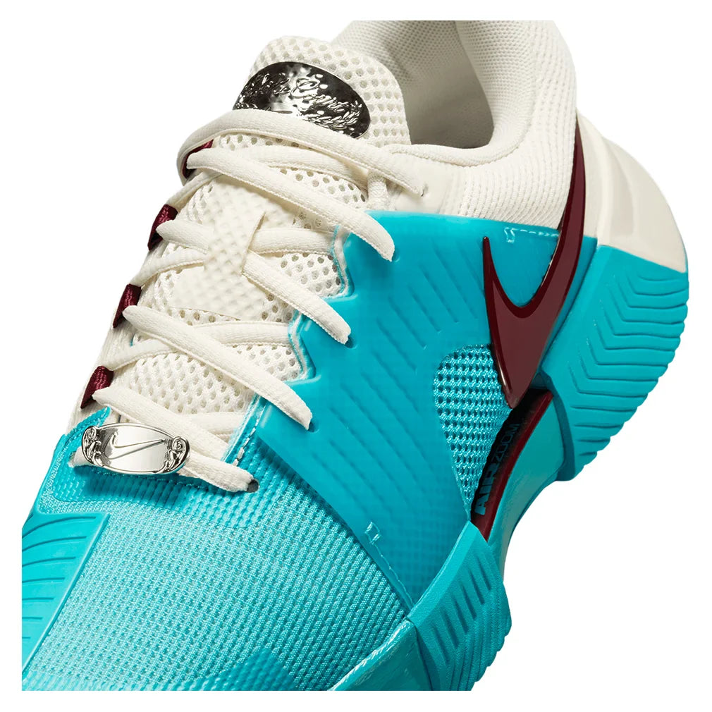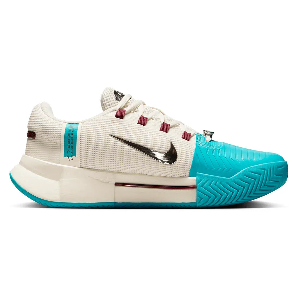 The new NikeCourt Women's Zoom GP Challenge 1 PRM Tennis Shoes have Air Zoom units in the forefoot AND the heel for the ultimate combination of speed and support. The stability is further enhanced by a midfoot plastic plate which helps with quick direction changes. The medial toe has extra rubber to help withstand excessive wear and tear and the forefoot is protected with high abrasion rubber for added traction. The traditional U-throat design provides easy entry and adjustment, and an extra padded tongue is constructed with breathable mesh for cool comfort. The GP Challenge 1 takes up the mantle of the GP Turbo and offers more volume around the ball of the foot for greater comfort, stability, and balance.