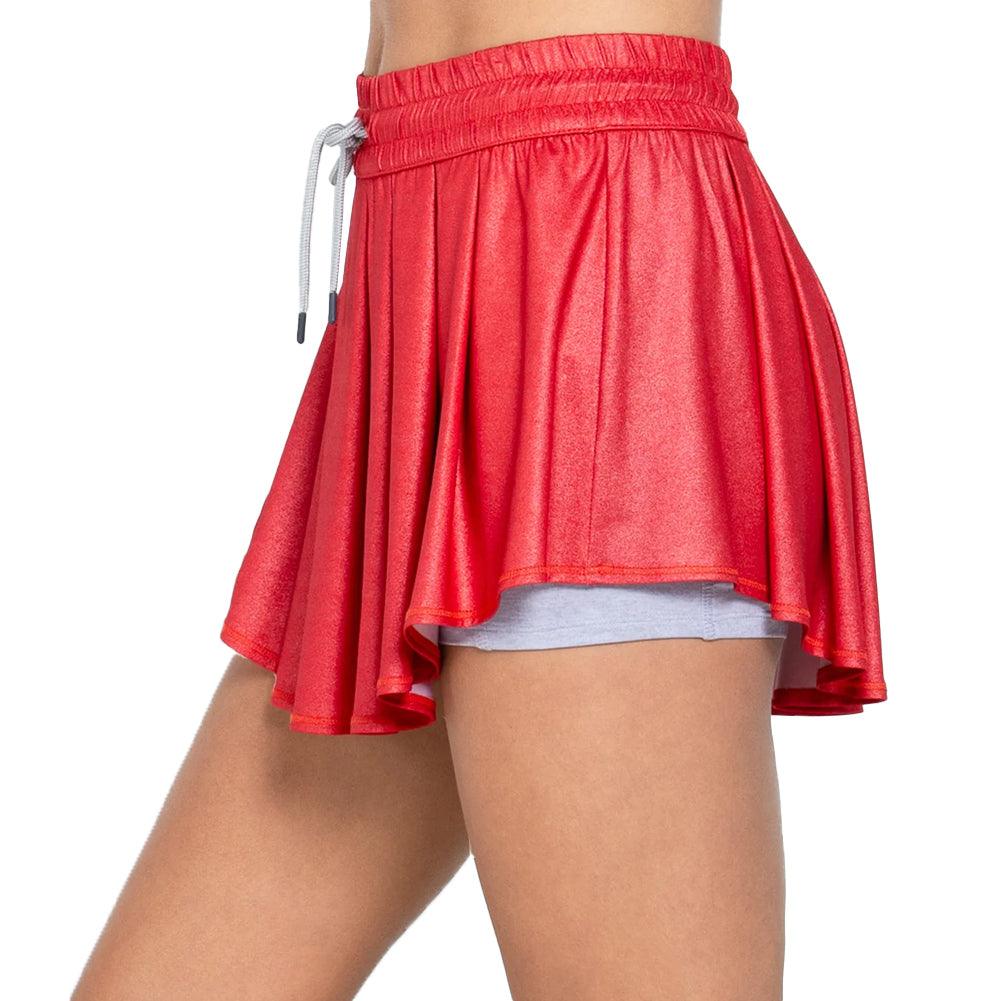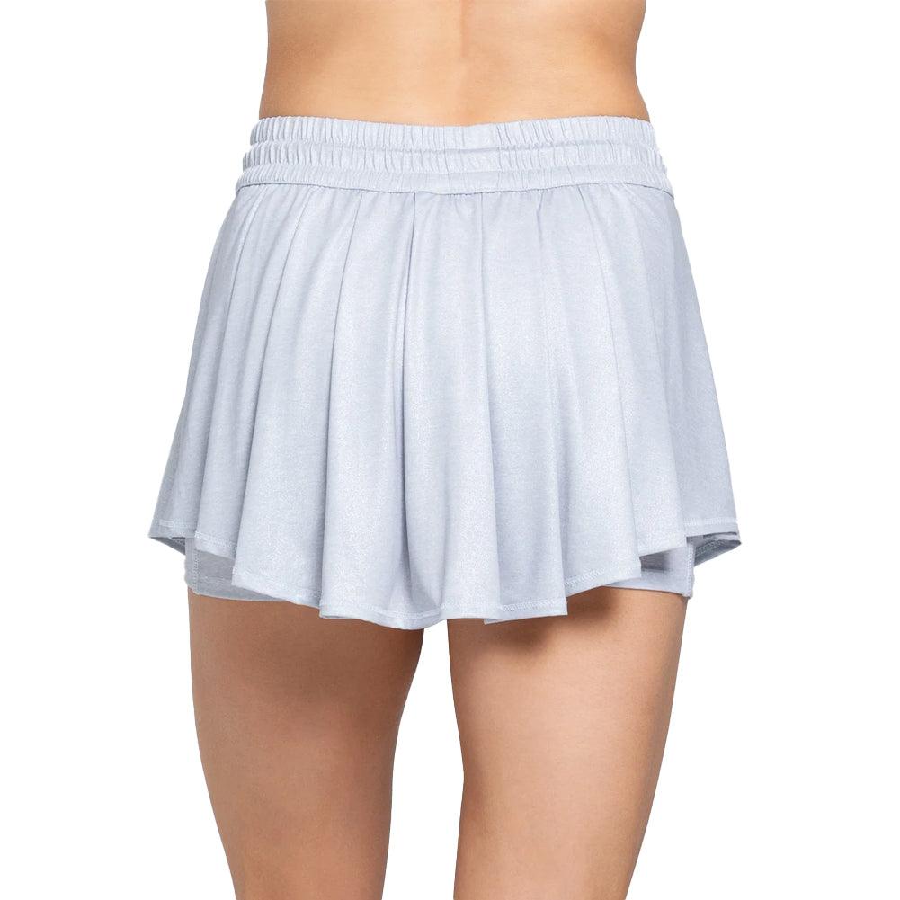 Add some shimmer to your wardrobe with the Lucky in Love Women's High Waist All That Shimmers Tennis Skort. Featuring built-in shorts for comfort and visible through it's chic design, this skort offers a perfect blend of functionality and fashion. The front drawstring tie allows for a personalized fit, while the unique pattern adds a vibrant touch to your on-court look. Achieve peak performance in style with this eye-catching skort.
