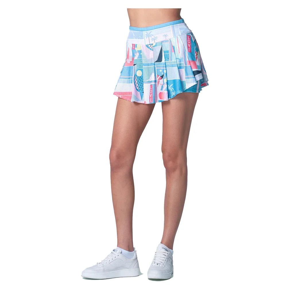 A classic look with a modern twist, the Lucky in Love Women's Shibori Plaid 13.5 Inch Tennis Skort White and Royal. This timeless white skort is elevated with blue shibori plaid details, bringing a unique and eye-catching design to the court. Crafted from high-quality fabrics, it offers breathability, comfort, and durability for intense play. The 13.5-inch length and built-in shorts provide stability and coverage, while the wide waistband and flattering skirt shape add a touch of flair and individuality. Whether you're competing or training, this skort ensures you move with confidence and style.