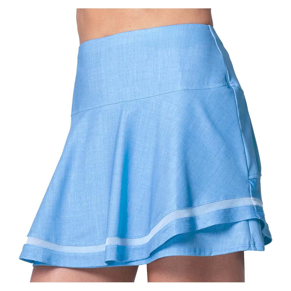 The Lucky in Love Women's Linen Play Tennis Skort features a wide, comfortable waistband that provides secure support without digging or shifting during play. Built-in undershorts offer confident coverage for active movement, while a distinctive bustle detail in the back adds feminine flair and visual interest. Strategic mesh detailing provides ventilation and contemporary style to this classic silhouette. The linen-blend fabric offers breathability and comfort for all-day wear on court. This skort combines playful design elements with practical performance features, perfect for players who want to stand out with unique styling while maintaining the functionality needed for competitive play. The thoughtful construction and eye-catching details make this a memorable addition to any tennis wardrobe.