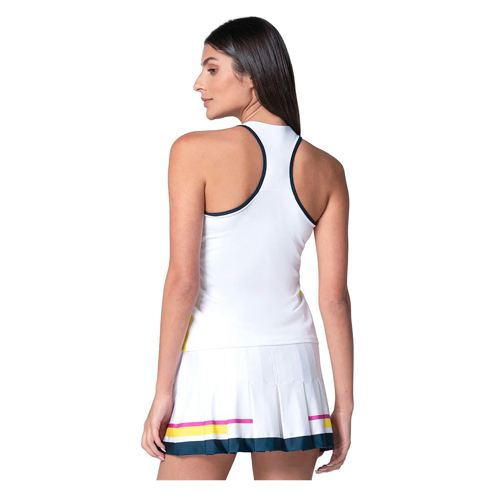 Show off your style in our Lucky In Love Women's Stripe Hype Tennis Tank with Bra, a stylish and supportive tank top designed to elevate your style on the tennis court. This tank top features a flattering V-neck design that adds a touch of style to your athletic ensemble. The V-neckline creates a feminine and sporty look while allowing for breathability and freedom of movement. With a racerback design, the tank top offers enhanced mobility for those overhead swings. This tank comes with a built-in bra for added support. Designed with a fitted look, the tank top accentuates your natural curves while providing a comfortable and supportive fit.