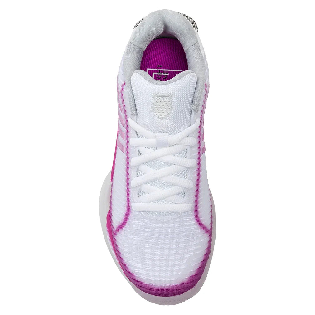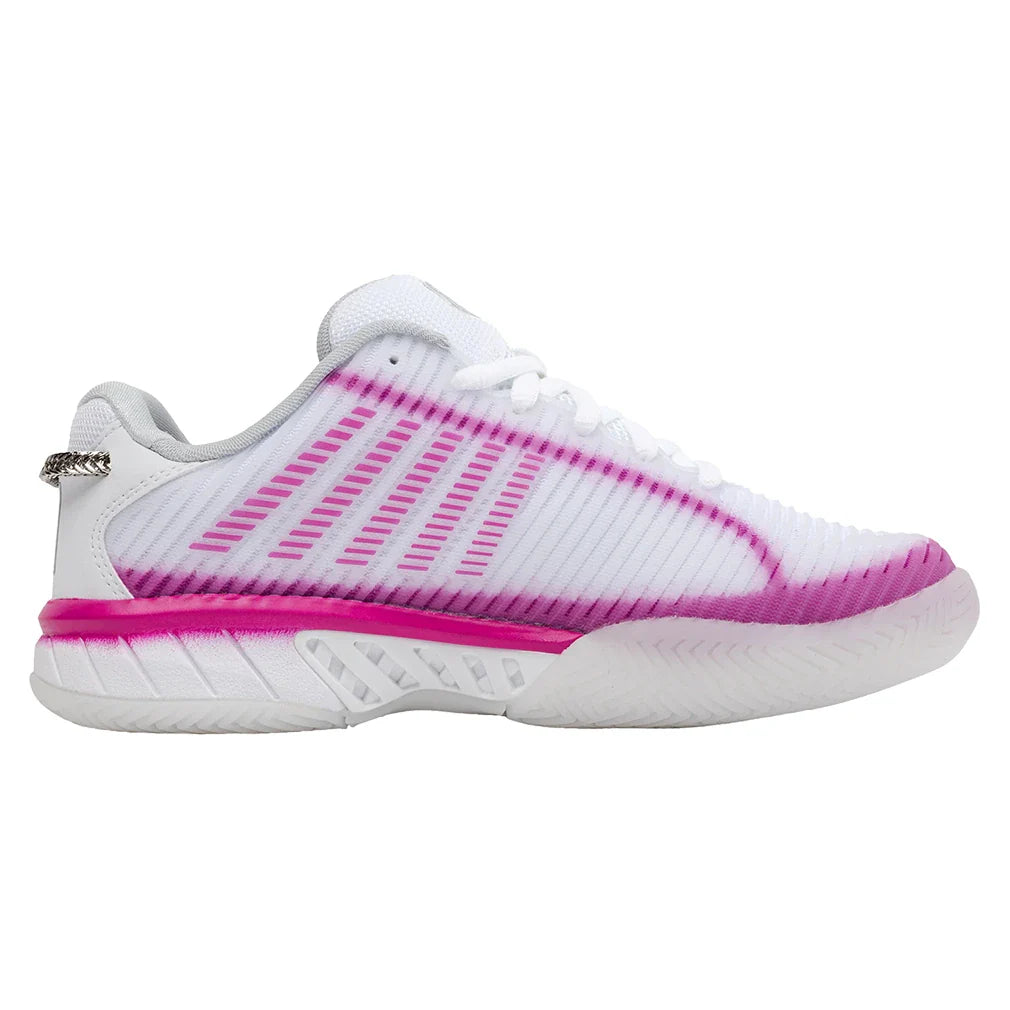 K-Swiss Women's Hypercourt Express 2 x Lucky in Love Tennis Shoes build on the success of one of the most popular shoes in the sport: The Hypercourt Express. With this update, players will benefit from a lighter overall build, more supportive upper, and new Surgelite midsole technology. The Hypercourt Express 2 maintains the comfortable fit that Hypercourts were known for and introduces a modern style to keep your feet looking as fresh as they'll feel on the court.
