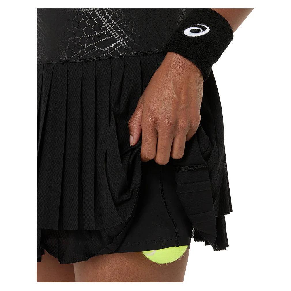 Elevate your on-court style and performance with the ASICS Women's Match Night Energy Tennis Dress. Engineered with ACTIBREEZE™ technology, this dress is lightweight and quick-drying, so you can stay focused during intense play. A mesh back panel enhances breathability, keeping you cool and comfortable, while the racerback design allows for unrestricted movement and fewer distractions. The flattering waistband and pleated skirt add a touch of femininity to this functional piece. Made with at least 50% recycled materials, it’s a choice that combines performance, style, and sustainability.