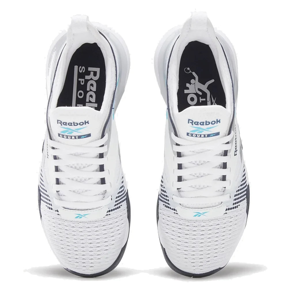 Step out of the gym and onto the court in the Reebok Women's Nano Court Shoes. Created for any game you play on the court, whether tennis, pickleball, padel, racquetball or badminton. They have a Flexweave® upper with extra support where you need it most. A herringbone Megagrip rubber outsole provides multidirectional traction to keep you firmly planted on the court.