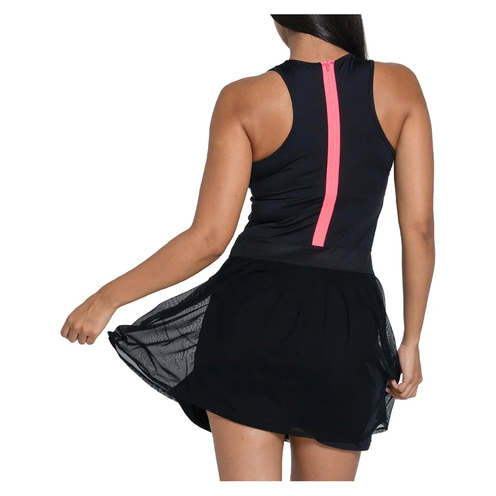 Elevate your tennis game to the "Next Level" with the Lucky In Love Women's Next Level Tennis Dress. This stylish and functional dress features a pleated skirt for a touch of playfulness, a racerback design for freedom of movement, and a convenient zipper in the back for easy wear. The high neckline adds a modern and chic element to the overall look, providing a fashionable edge to your on-court attire. The dress is designed to be fitted, offering a sleek and athletic silhouette. Step onto the court with confidence and style in the Next Level Tennis Dress by Lucky In Love, where performance meets fashion.