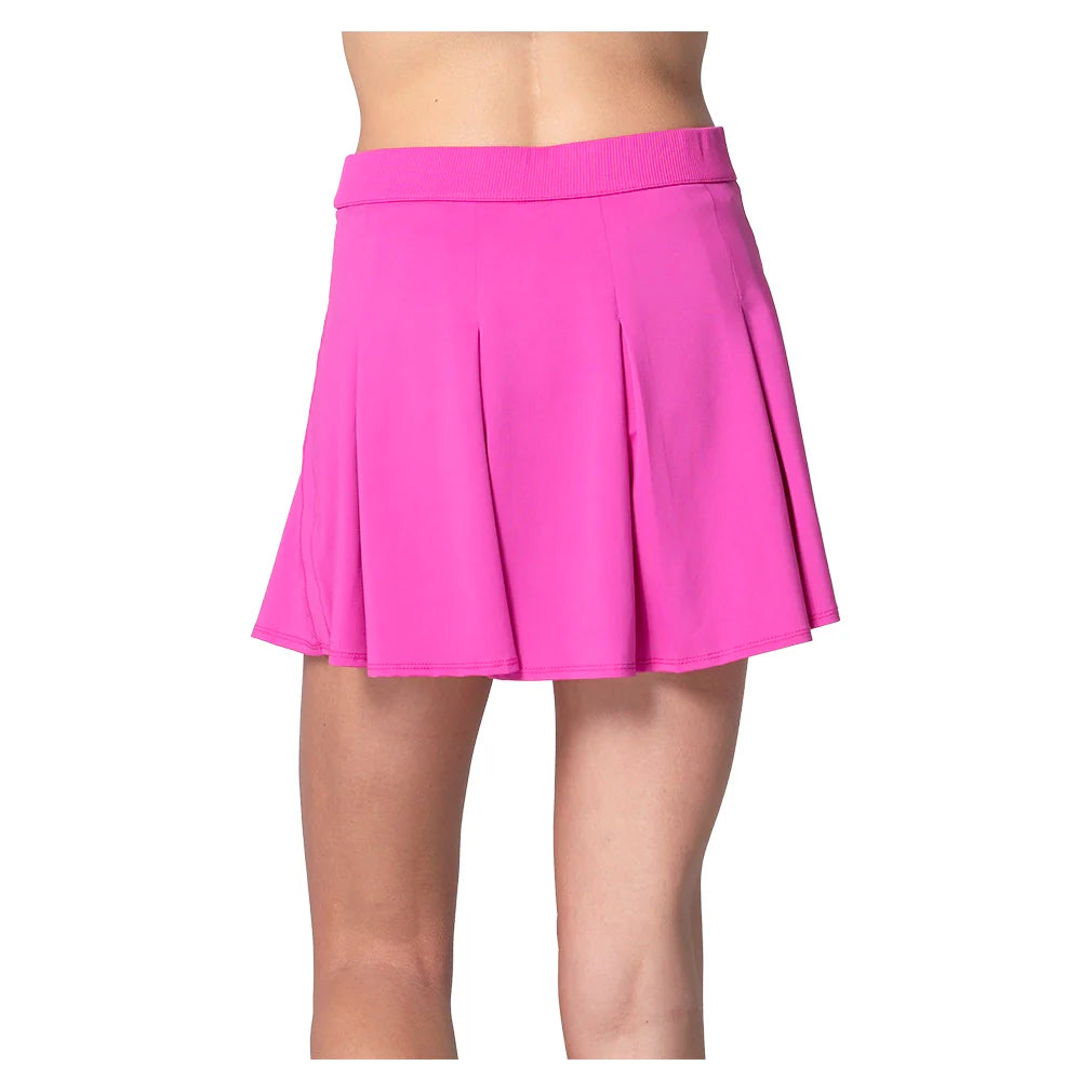 Look classy in the Lucky In Love Women's Pleat Party Tennis Skort. This traditional white tennis skort is made with ultra-lightweight performance fabric and features a watercolor pinstripe side panel detail to add a little color. With a built-in shortie, you can protect your skin from the sun with this skort's SPF30+ fabric. Stay comfortable with its elastic waistband and quality material.