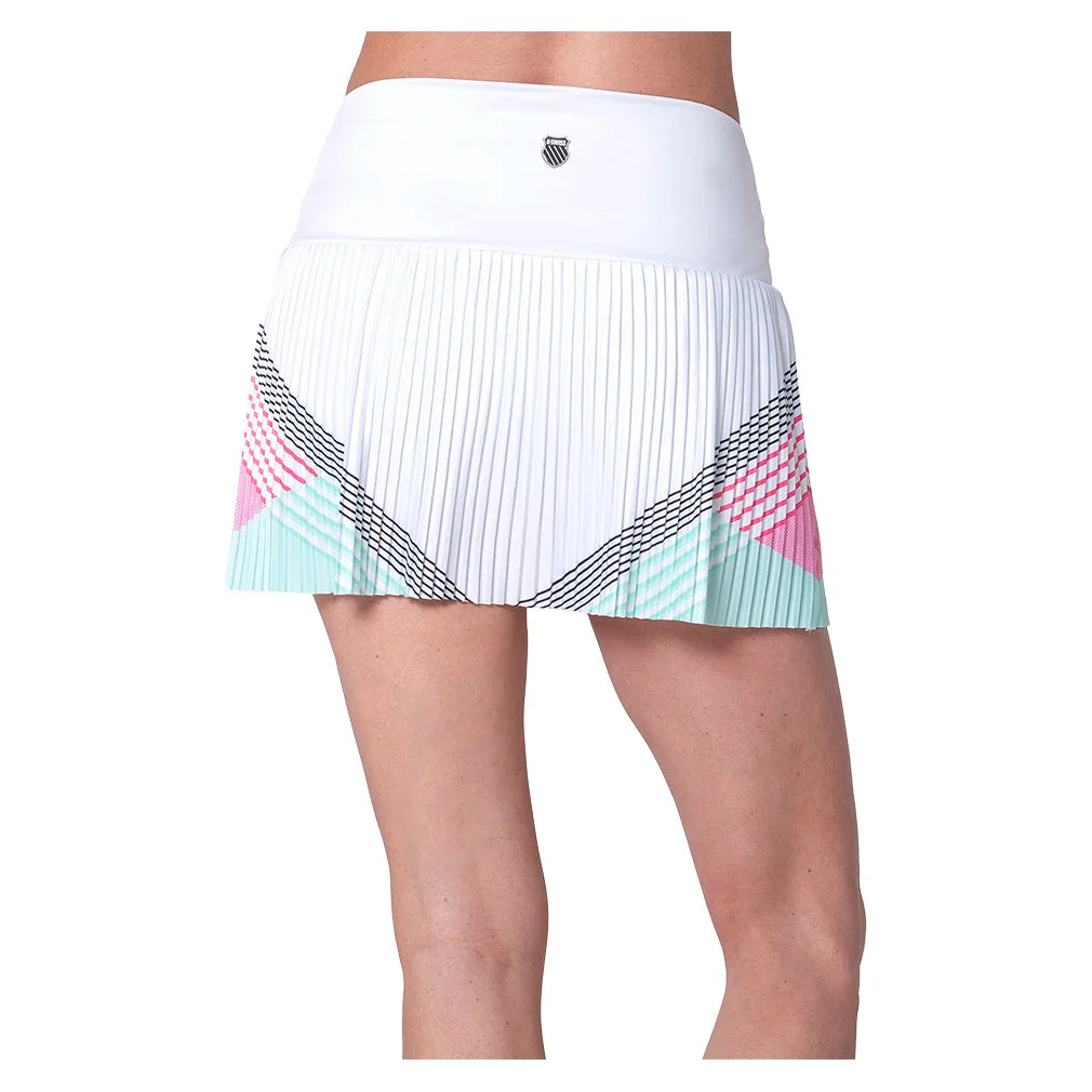 The KSWISS Women's 14.5 Inch Pleated Tennis Skirt is the perfect choice for your next match on the court. Made from lightweight, moisture-wicking fabric, this skirt will keep you cool and dry throughout your game. The pleated design adds a stylish touch, while the 14.5 inch length offers coverage and comfort. Whether you're a beginner or a seasoned pro, this tennis skirt is sure to become a go-to in your tennis wardrobe.