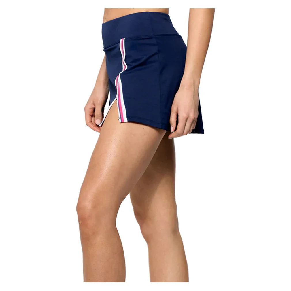 Look stylish this summer with the Lija Women's Uprise skort that perfectly blends classic white with playful multi-colored accents for a fresh, vibrant look. This eye-catching combination brings energy to your tennis wardrobe while maintaining that sophisticated edge you love. The 13-inch length delivers ideal coverage and freedom of movement for every point you play.