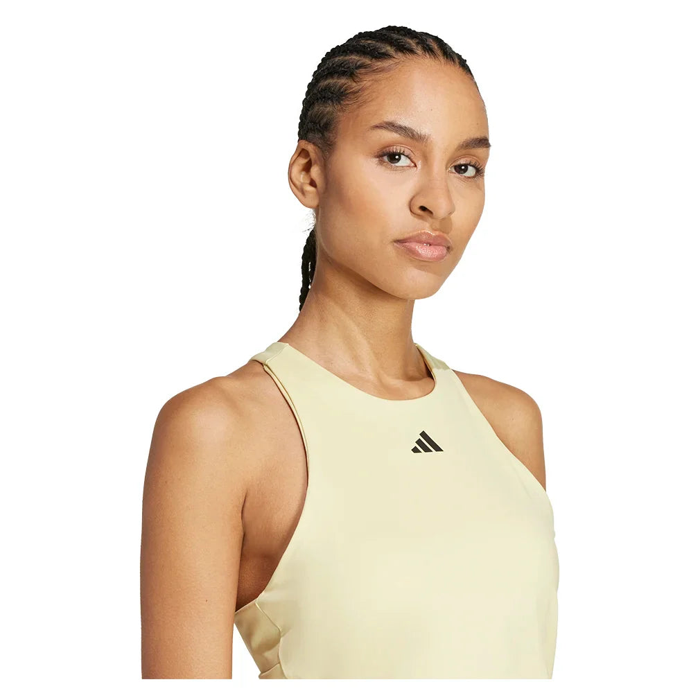 Dominate the court in the adidas Women's Climacool Y Tennis Tank, a blend of sleek design and performance-driven features. Climacool technology ensures you stay cool and comfortable during intense rallies, while the Y-back design allows for a full range of motion. A high neckline adds a modern, athletic touch, and the slim fit with a slight high-low hemline creates a flattering silhouette. Perfect for players who demand both style and functionality.