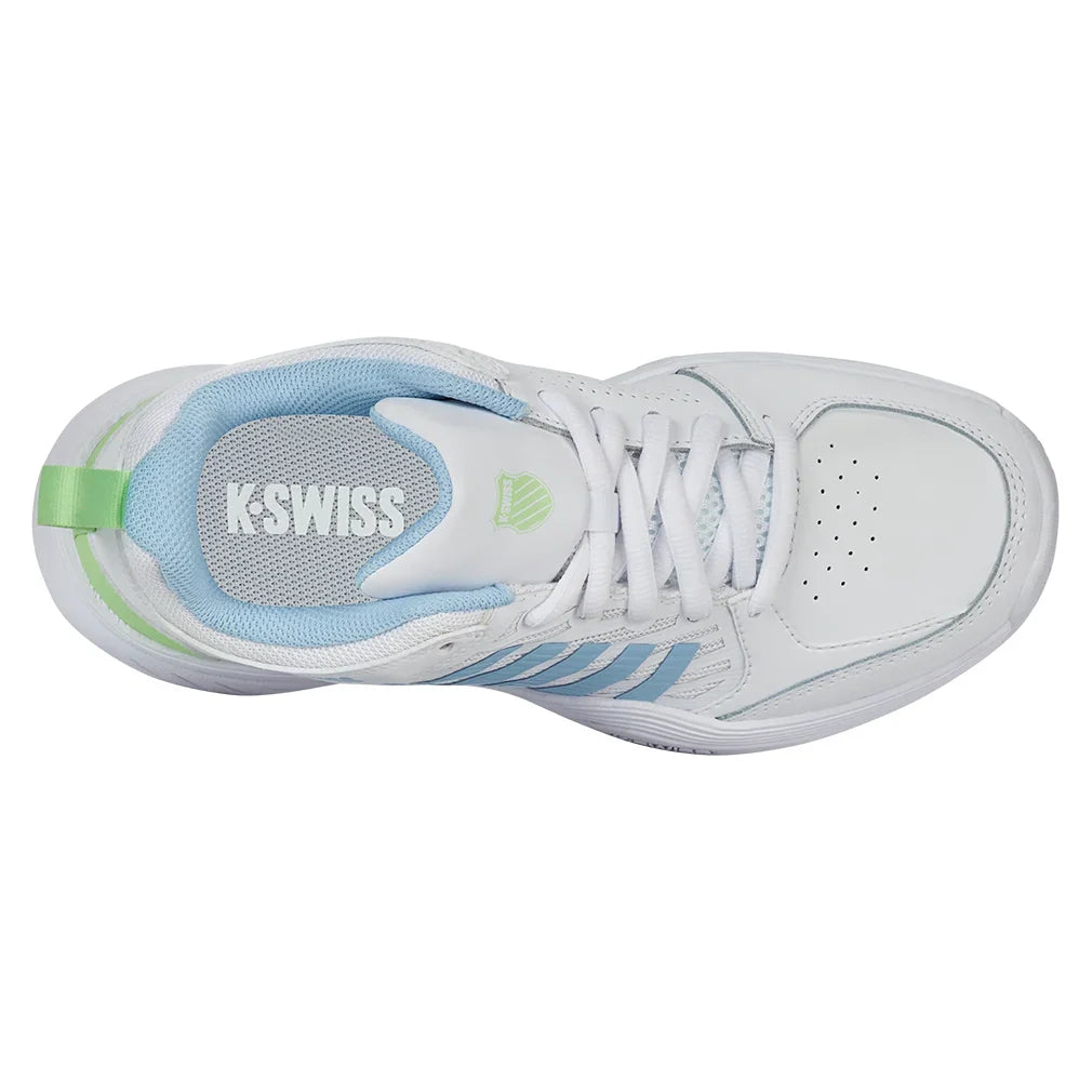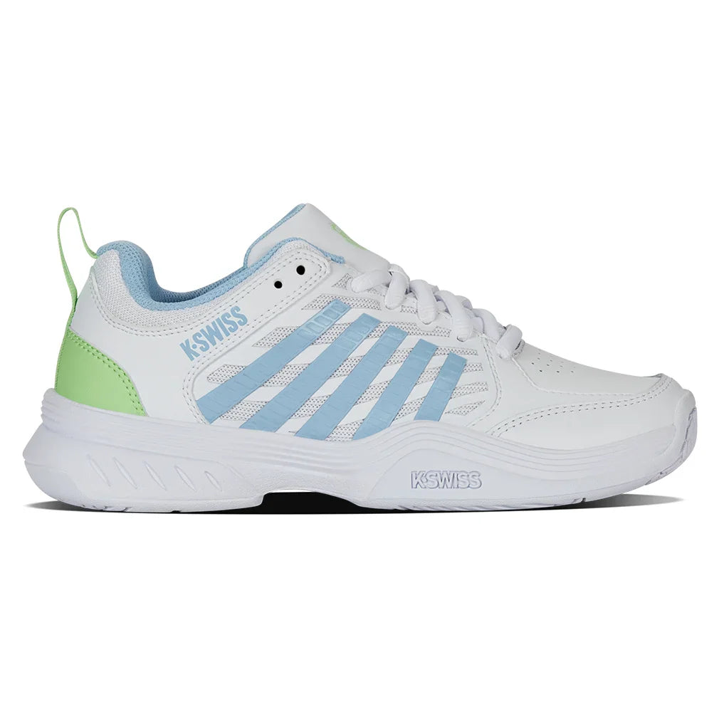 The new K-Swiss Women's Court Express 2 Tennis Shoes is the perfect option for developing players. Its breathable mesh quarter is paired with a K-EVA Midsole for maximum comfort and support. A non-marking Aosta 7.0 rubber outsole with a herringbone pattern offers optimal traction and extends as a drag guard for increased durability. This shoe merges a light-responsive structure with enhanced comfort components, giving you the edge you need to level up your game.