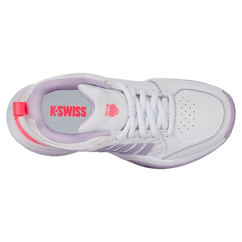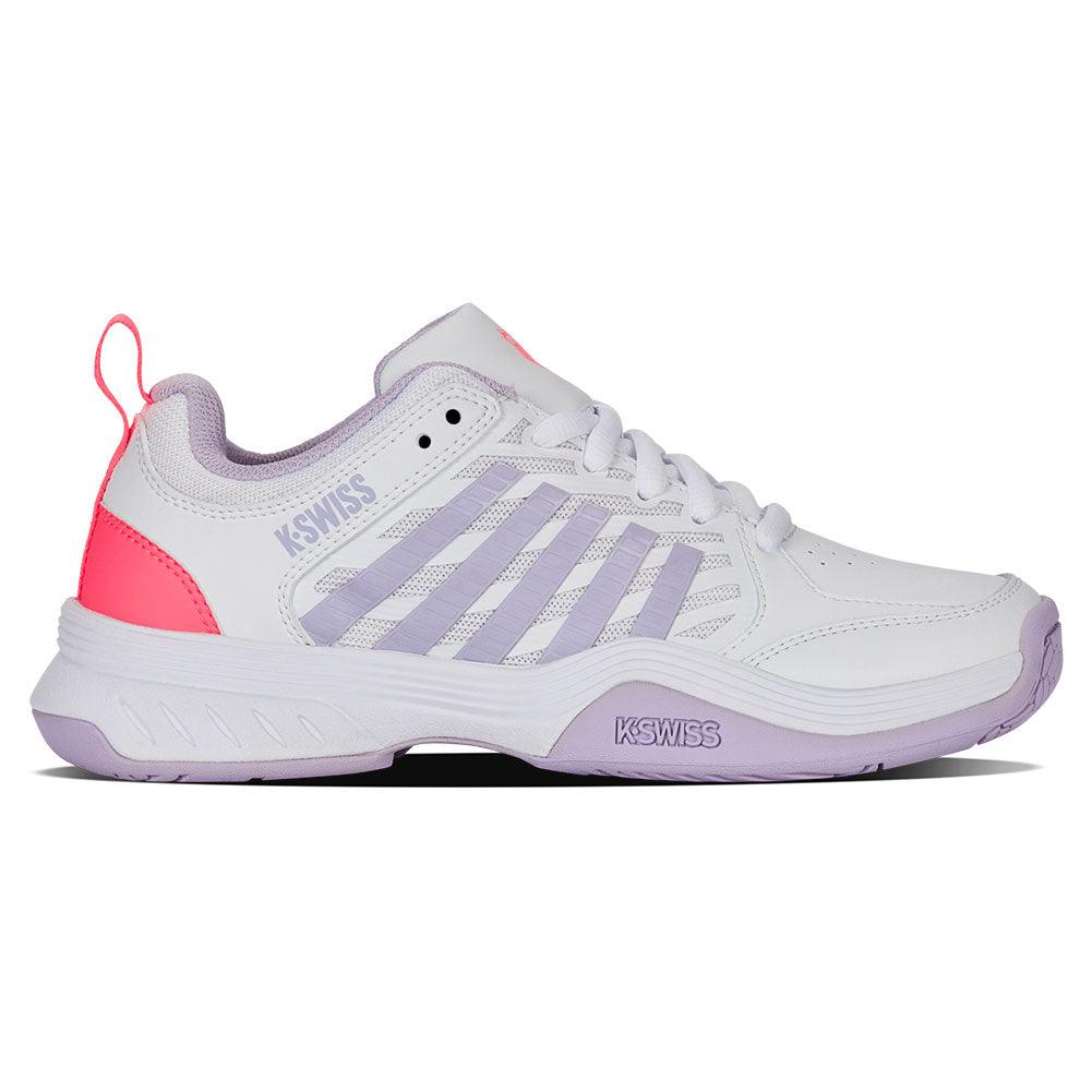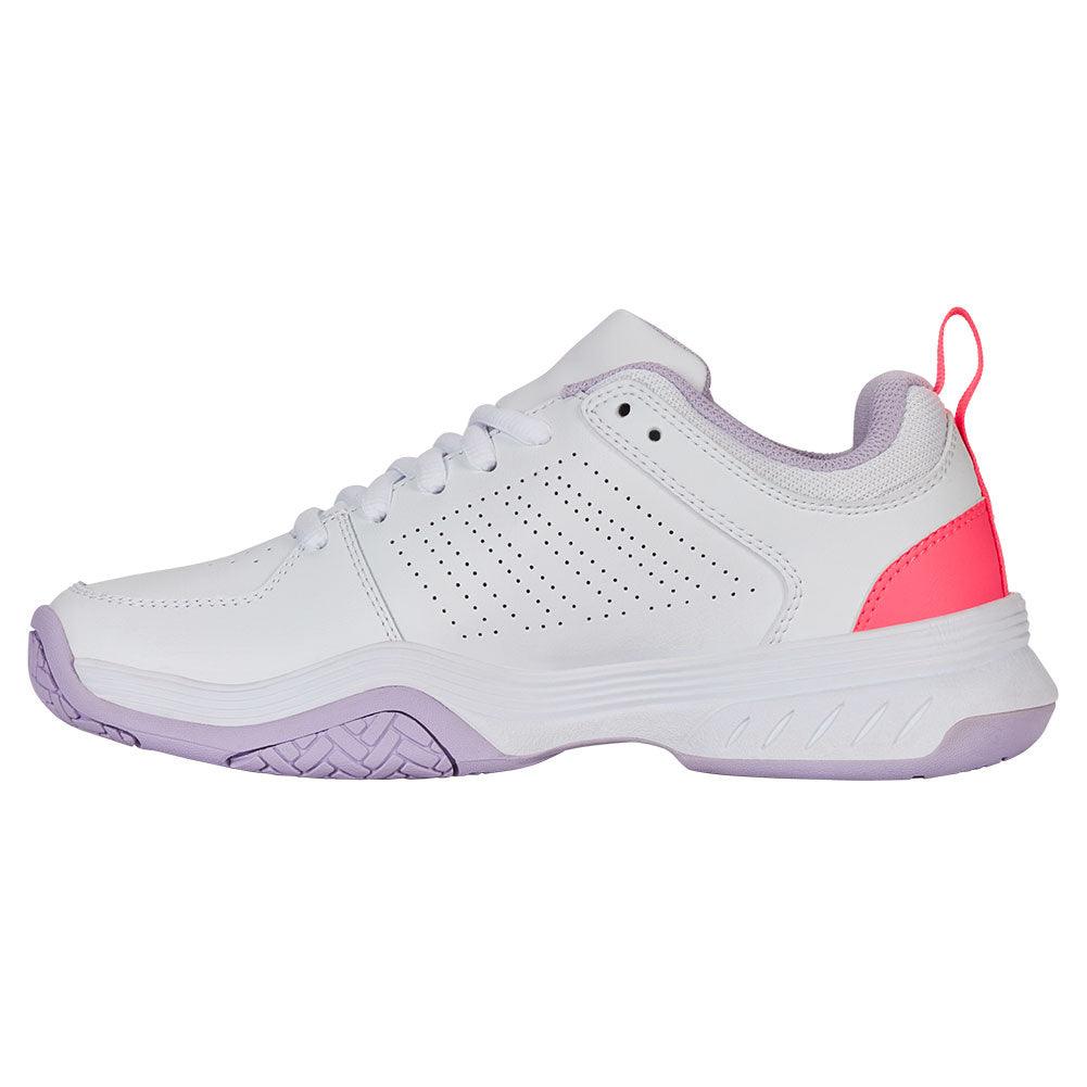 The new K-Swiss Women's Court Express 2 Tennis Shoes is the perfect option for developing players. Its breathable mesh quarter is paired with a K-EVA Midsole for maximum comfort and support. A non-marking Aosta 7.0 rubber outsole with a herringbone pattern offers optimal traction and extends as a drag guard for increased durability. This shoe merges a light-responsive structure with enhanced comfort components, giving you the edge you need to level up your game.