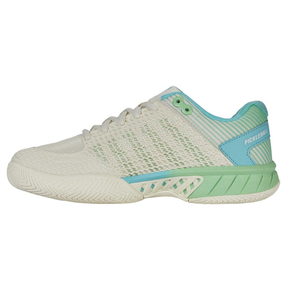 Get the K-Swiss Women's Express Light Wide Pickleball Shoes. This lightweight pickleball shoe takes inspiration from the popular Hypercourt Express tennis shoe giving players ultimate comfort, and breathability on the court. It's specifically designed to support on-court movement and performance needed for the sport. It's an all-around shoe, perfect for the new or frequent player, and features a customized Pickleball sock liner.