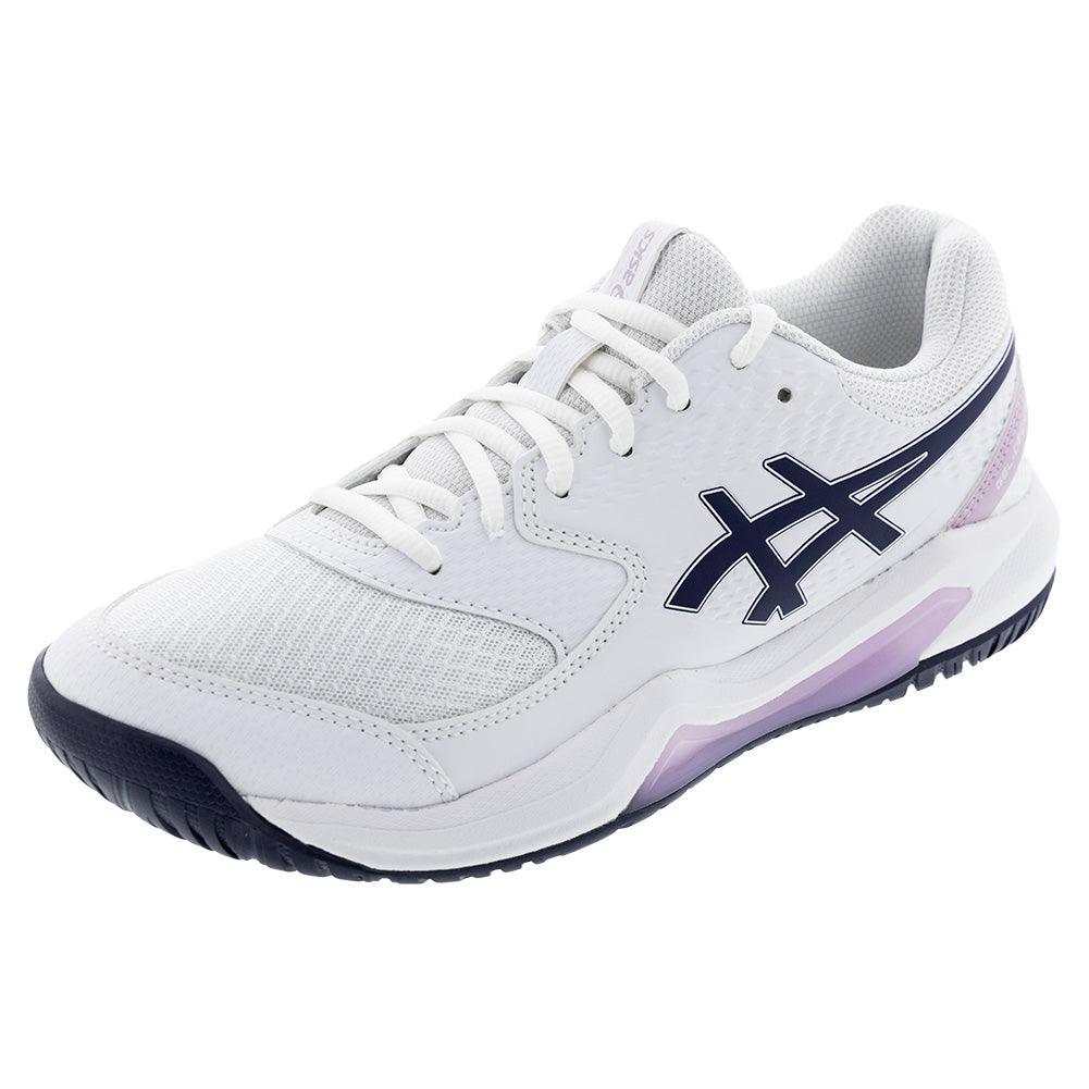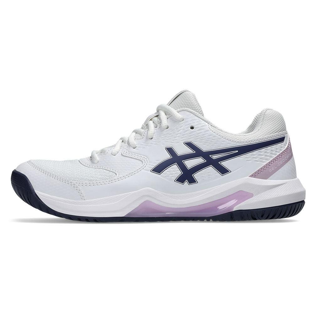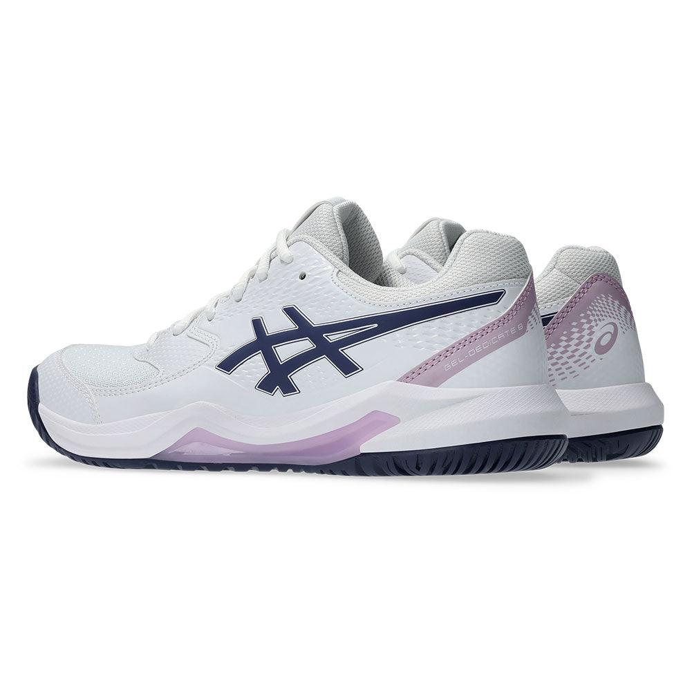 Women's GEL-Dedicate 8 Tennis Shoes White and Indigo Fog