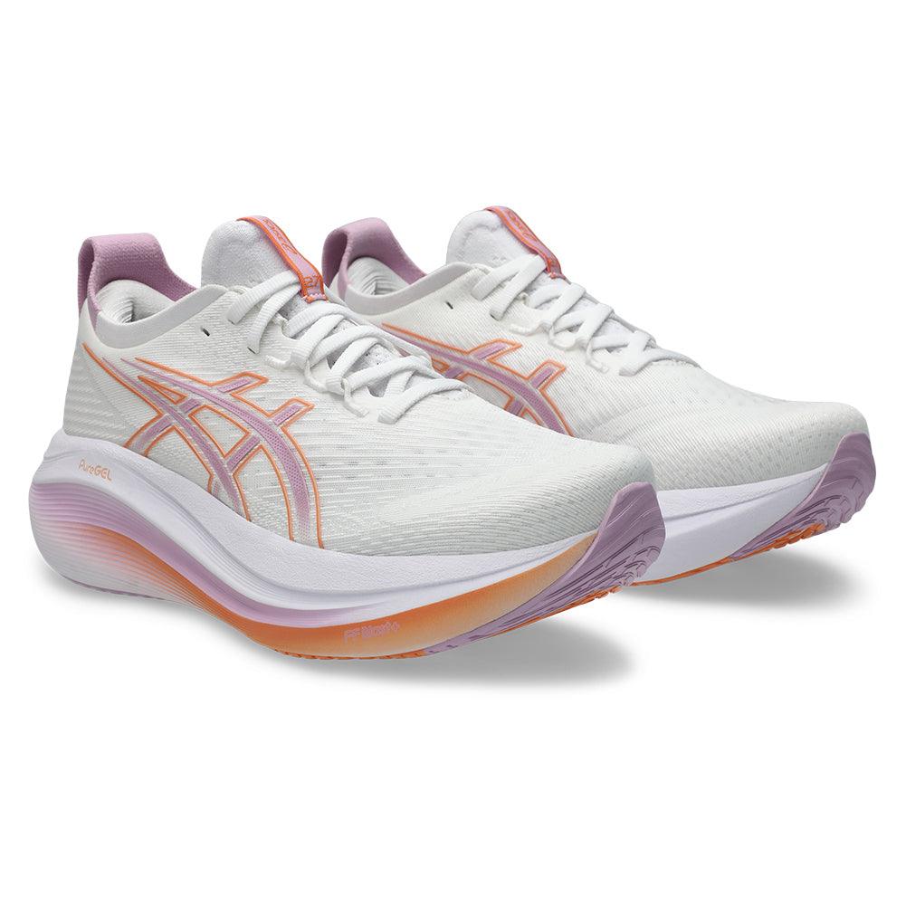 Women's GEL-Nimbus 27 Running Shoes White and Light Ube