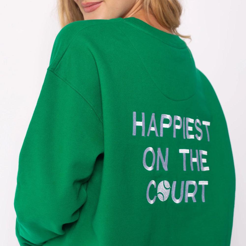 Women's Happiest On The Court Tennis Sweatshirt Green and White
