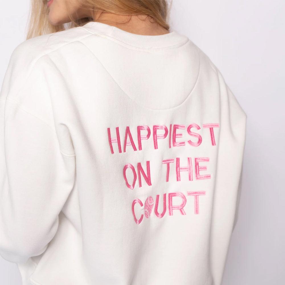 Women's Happiest On The Court Tennis Sweatshirt White and Pink