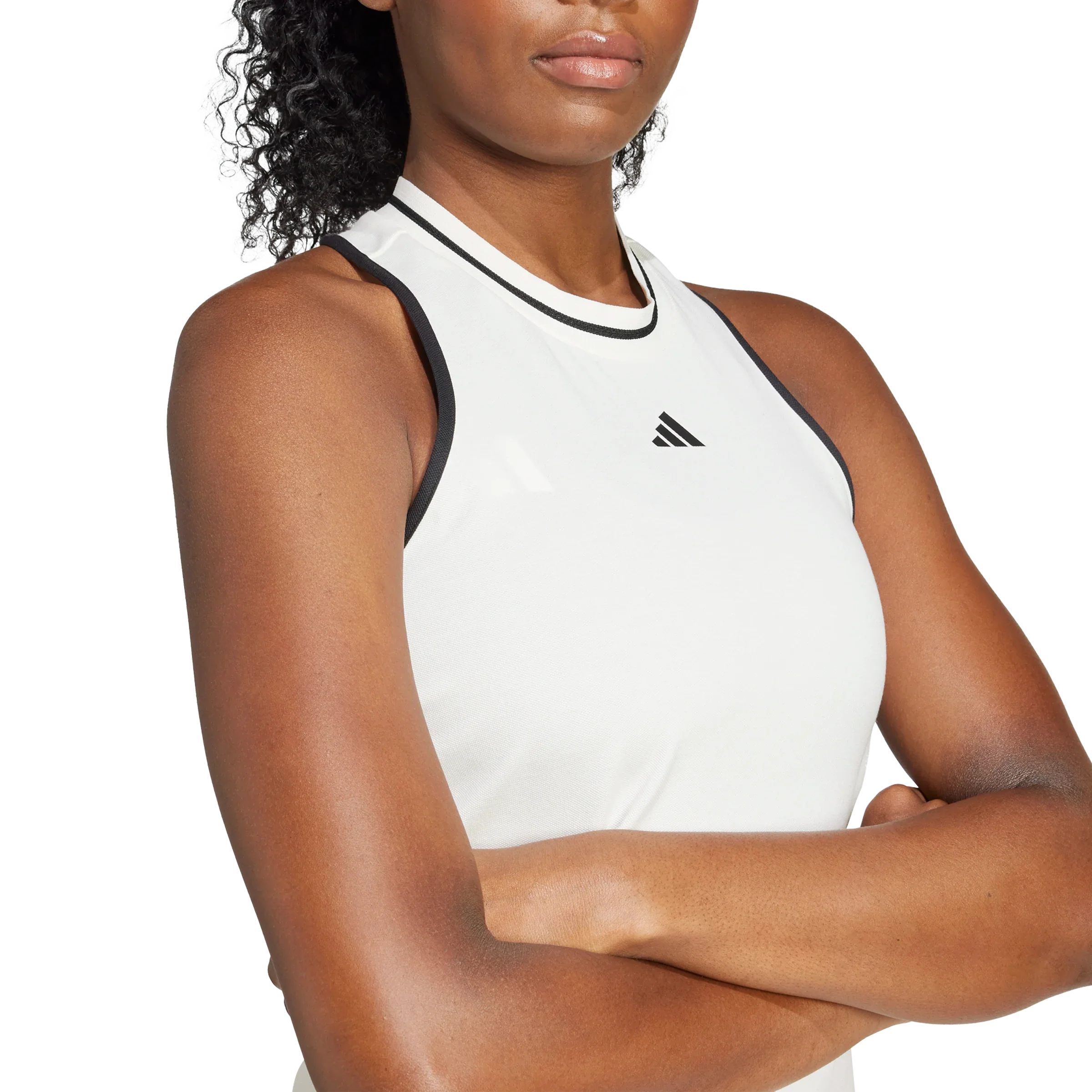 Stay cool and comfortable on and off the court with the adidas Women's Heritage Classic Tennis Tank. Designed for a clean, classic look, this tank blends a soft cotton feel with performance-ready AEROREADY moisture-wicking technology to keep you dry during intense play. The contrast crewneck adds a stylish touch, while the racerback design allows for a full range of motion. An adidas logo at the center chest completes the sporty, timeless aesthetic, making this tank a versatile choice for training, matches, or casual wear.