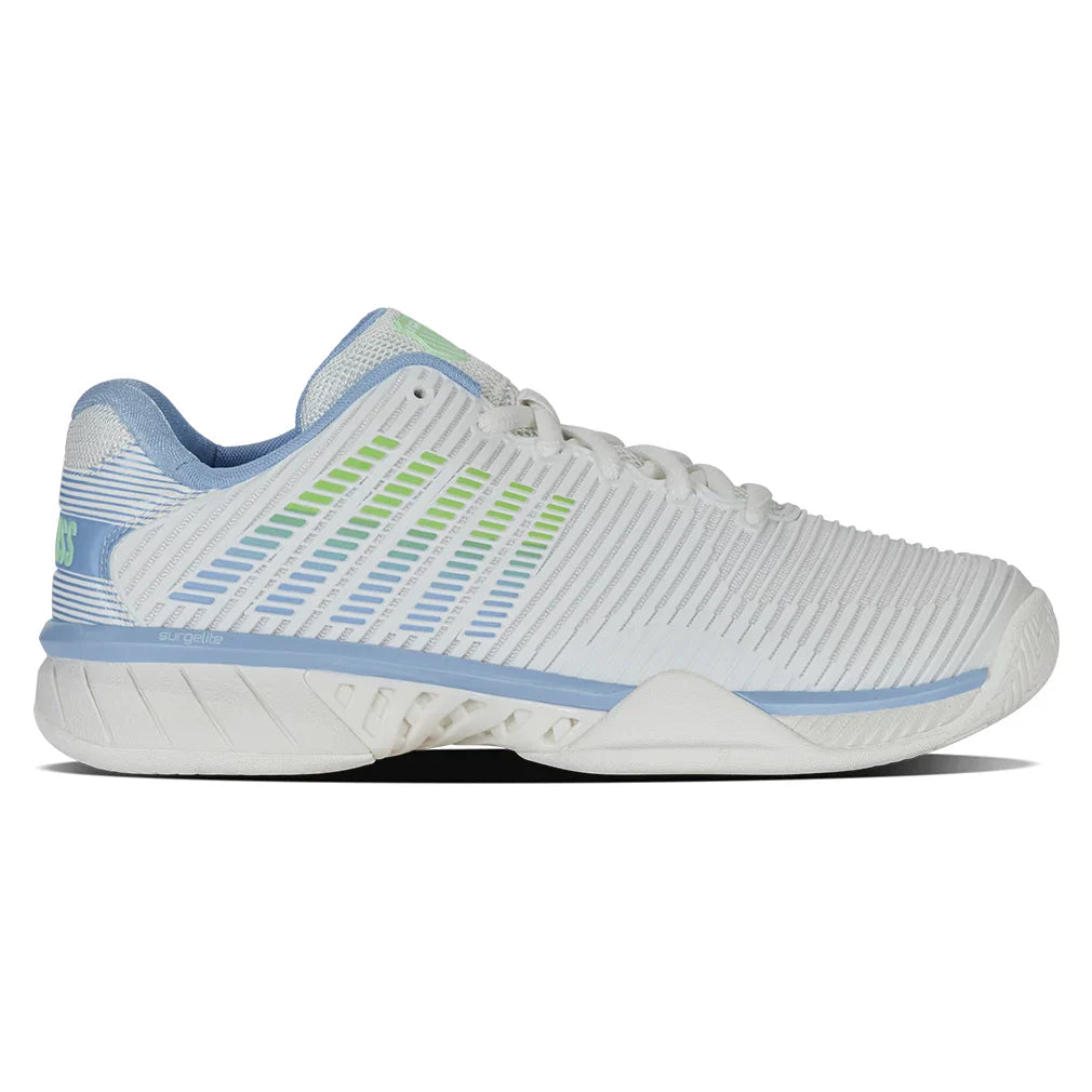 K-Swiss Women's Hypercourt Express 2 Tennis Shoes build on the success of one of the most popular shoes in the sport: The Hypercourt Express. With this update, players will benefit from a lighter overall build, more supportive upper, and new Surgelite midsole technology. The Hypercourt Express 2 maintains the comfortable fit past Hypercourts were known for, and introduces a modern style to keep your feet looking as fresh as they'll feel on the court.