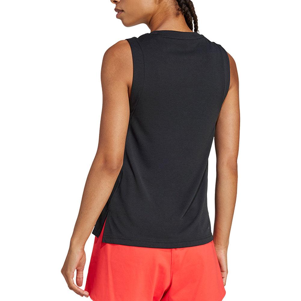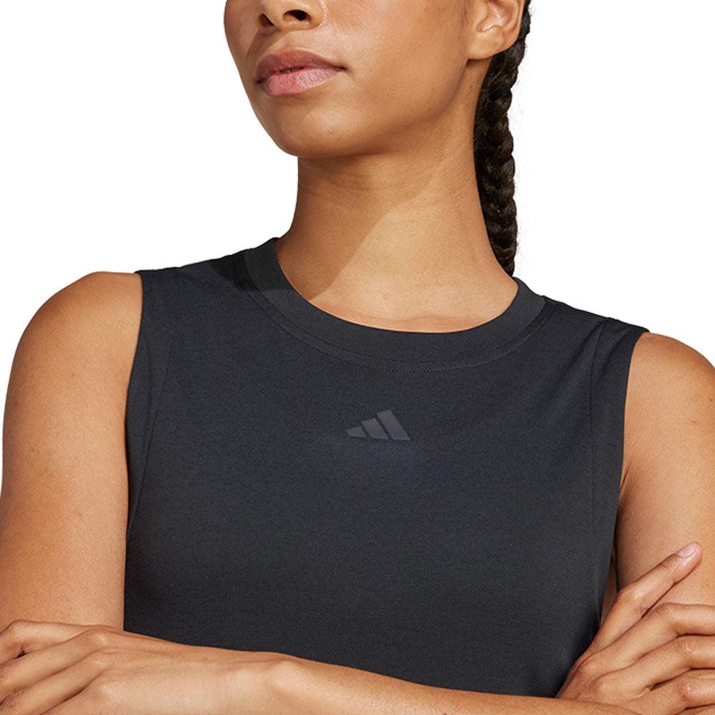 Get ready to earn your next title in the Adidas Women's Match Tennis Tank. This tank is a real show-stopper! It has a high, rounded neck, oversized armholes, and a wavy pattern. It also has crisscross seams at the bottom of the back of the tank and is made with AEROREADY technology so you can experience temperature control no matter if you are playing on clay or hard courts. Be sure to pair this tank with other Adidas apparel made only for London 2022!