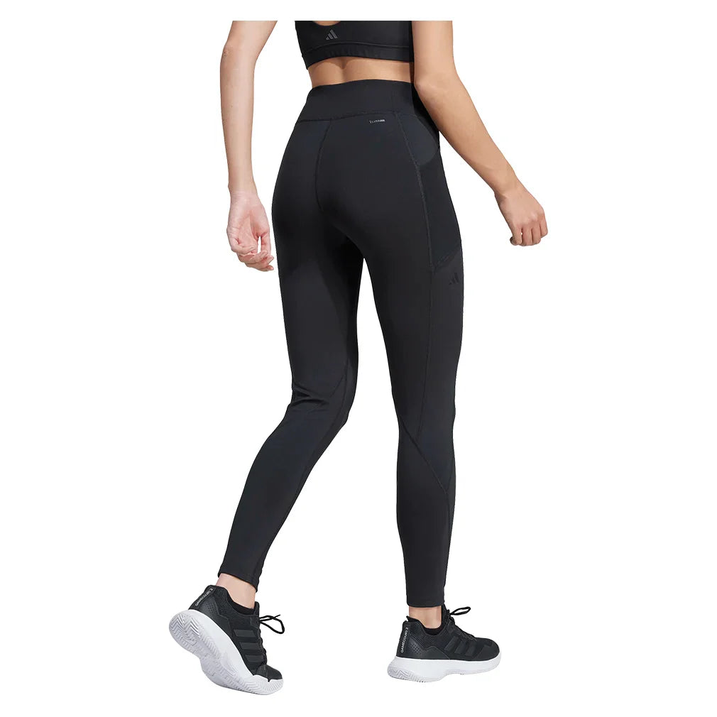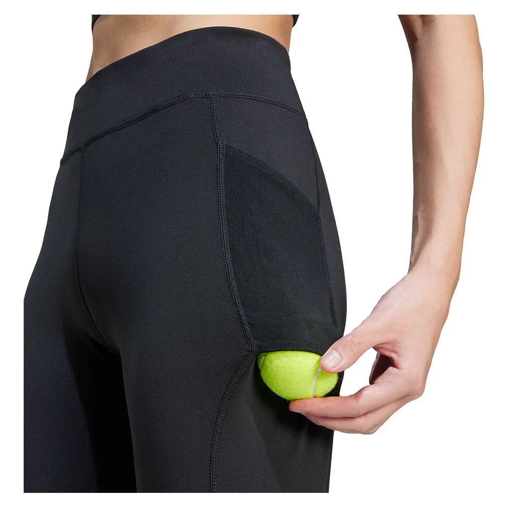 Stay game-ready with the adidas Women's Match Tennis Tight, designed for performance and convenience. The comfortable elastic waistband ensures a secure fit, allowing you to move freely across the court. Two drop-in pockets on the legs provide easy storage for tennis balls or small essentials, making these tights both practical and stylish. Perfect for players who value functionality and comfort in their gear.