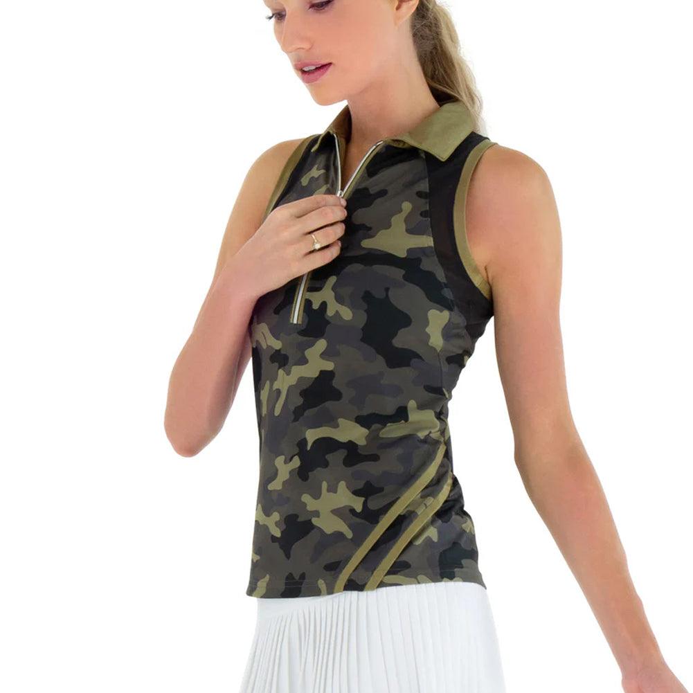 Women's Neisha Classic Tennis Polo Tank Camo and Black