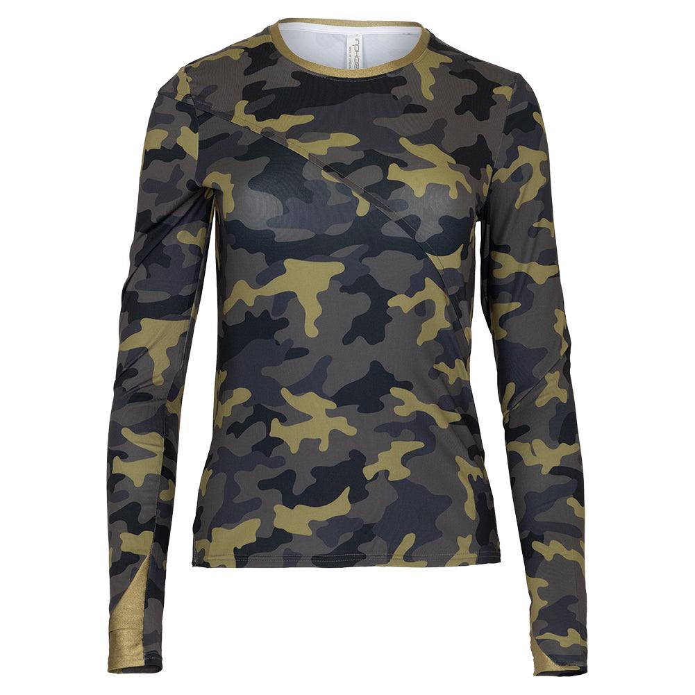 Women's Parker Long Sleeve Tennis Top Camo and Golden Green