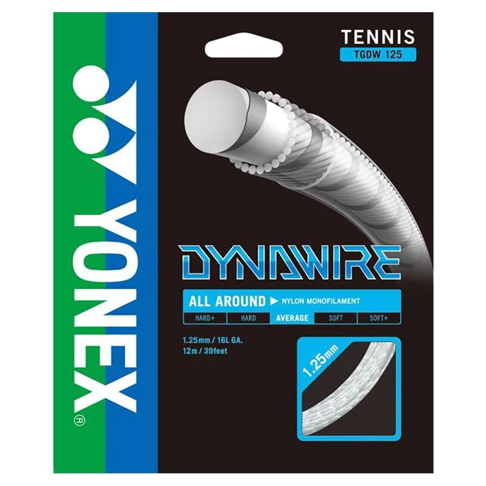 Yonex Dynawire Tennis String uses a solid core construction for a crisp feel and durable response. The string also incorporates a unique metal film around it for a boost in power, and silicone coating to help the strings slide easily. Dynawire is a solid all-around synthetic gut string with a comfortable response.