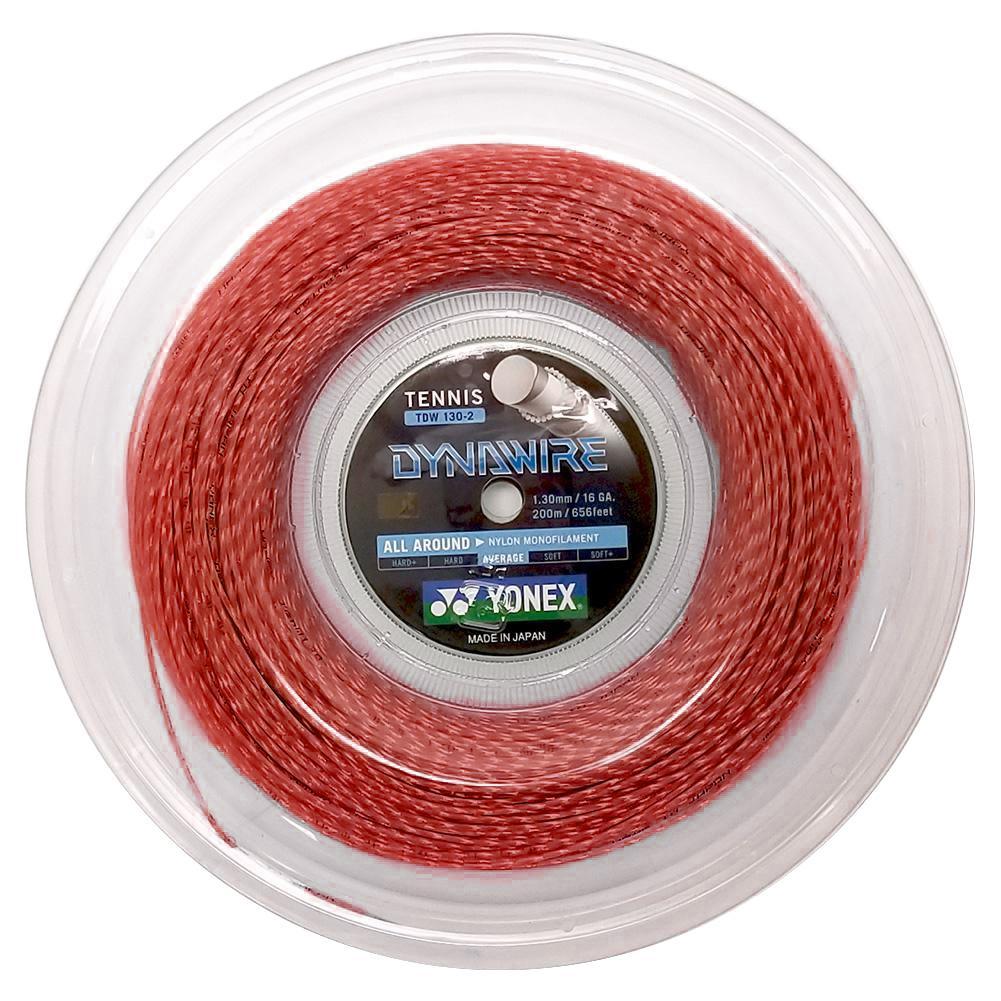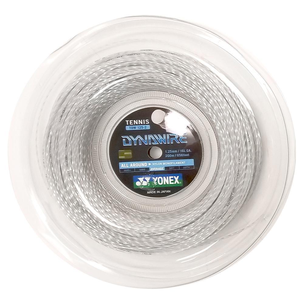Yonex Dynawire Tennis String Reel uses a solid core construction for a crisp feel and durable response. The string also incorporates a unique metal film around it for a boost in power, and silicone coating to help the strings slide easily. Dynawire is a solid all-around synthetic gut string with a comfortable response.