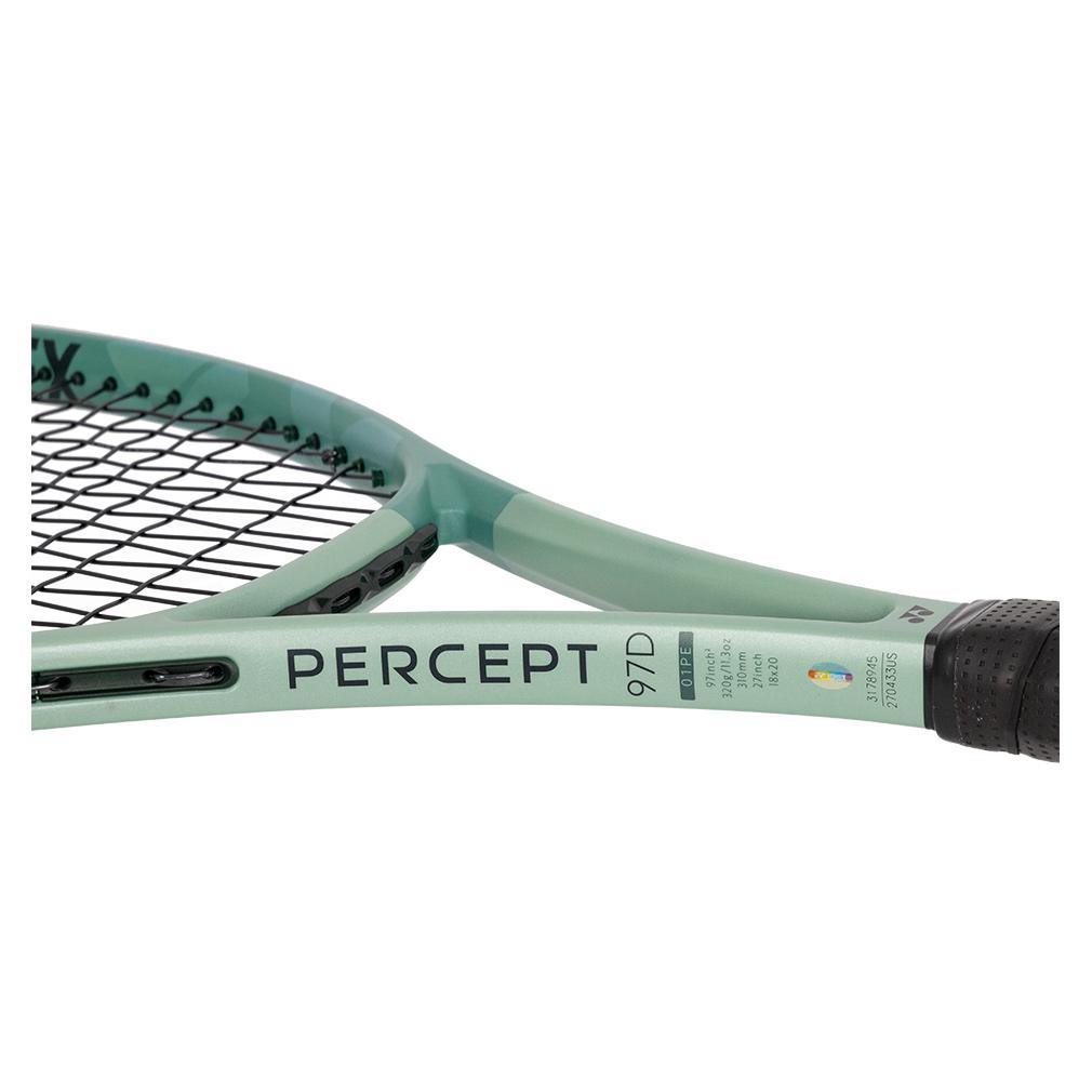 The Yonex PERCEPT 97D Demo Tennis Racquet takes up the mantle of the VCORE PRO 97D. The 97D is built for advanced players thanks to the 18x20 string pattern and heavier 11.3-ounce unstrung weight. The racquet uses the FLEXCON System; a tapered and elongated box-frame design for greater precision. Yonex' Flex Force graphite means the racquet can flex, but it snaps back quickly for greater spin and ball acceleration. Vibration Dampening Mesh is NOT in the PERCEPT models. Instead, Yonex added a transparent film placed between graphite to enhance flexibility called the SERVO FILTER. The new technology reduces unwanted vibration by 13%. While FLEXCON and SERVO FILTER create a more flexible shaft, Yonex increased the amount of graphite in the racquet face for a 3% increase in stability at impact. Think comfortable flex in the shaft but with a firmer and more powerful racquet head.