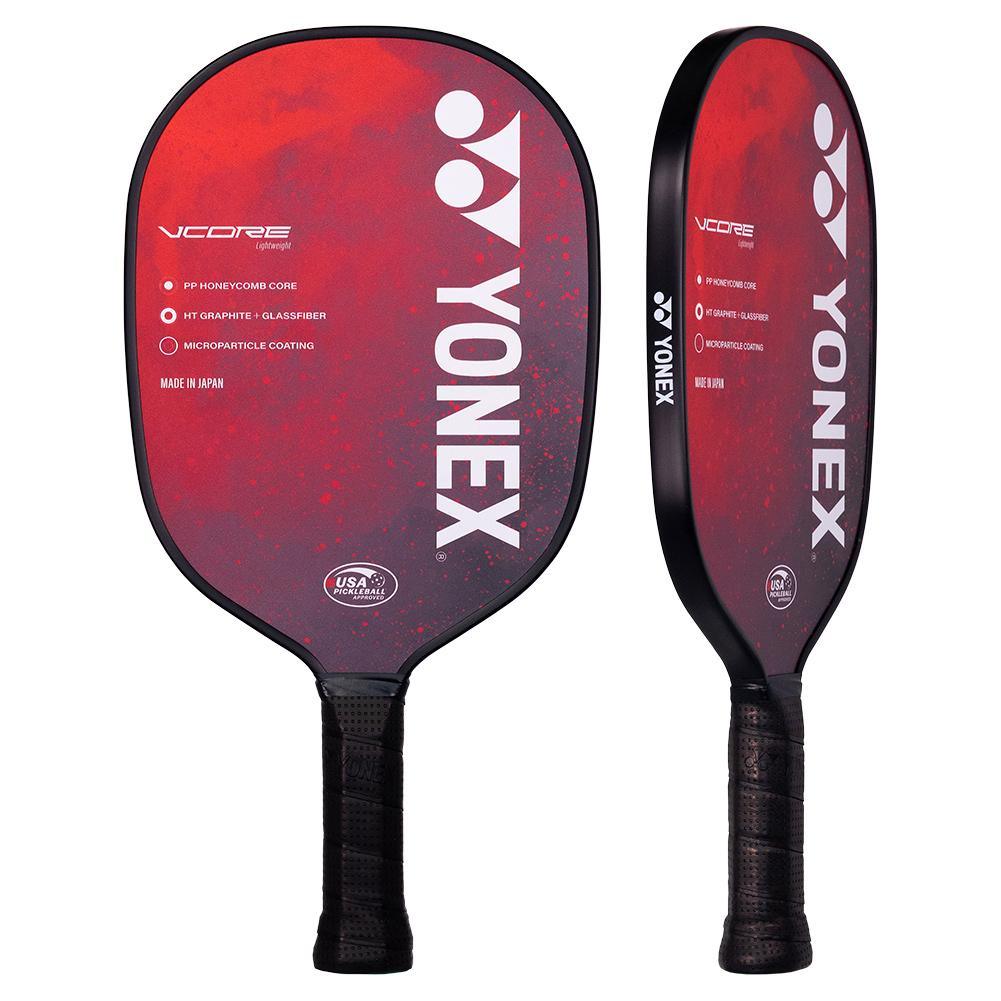Yonex joins one of the fastest growing sports in the USA with the Yonex VCORE Pickleball Paddle. This paddle is the lighter version at 7.6 ounces, and it features a multiple layer construction of fiberglass and graphite to give the EZONE a nice blend of control and power. The VCORE features a slightly more aerodynamic and rounded shape than the EZONE franchise. but the same thicker 15 millimeter thickness. The combination of the two creates a sizeable sweet spot, which delivers solid power and control.